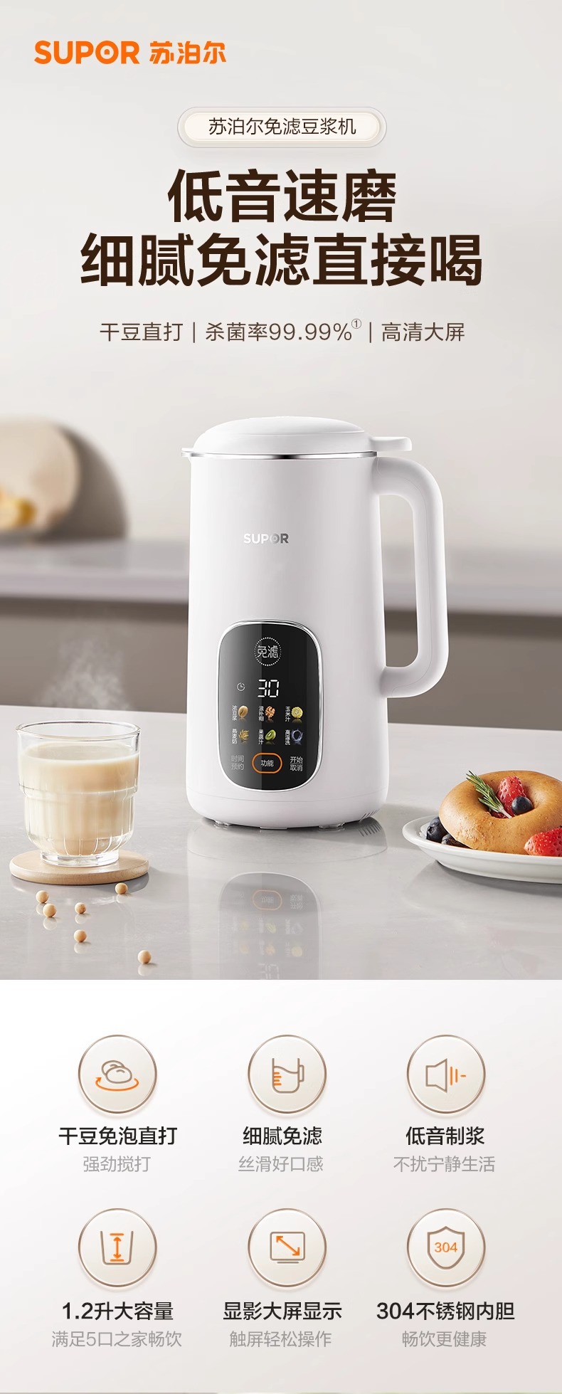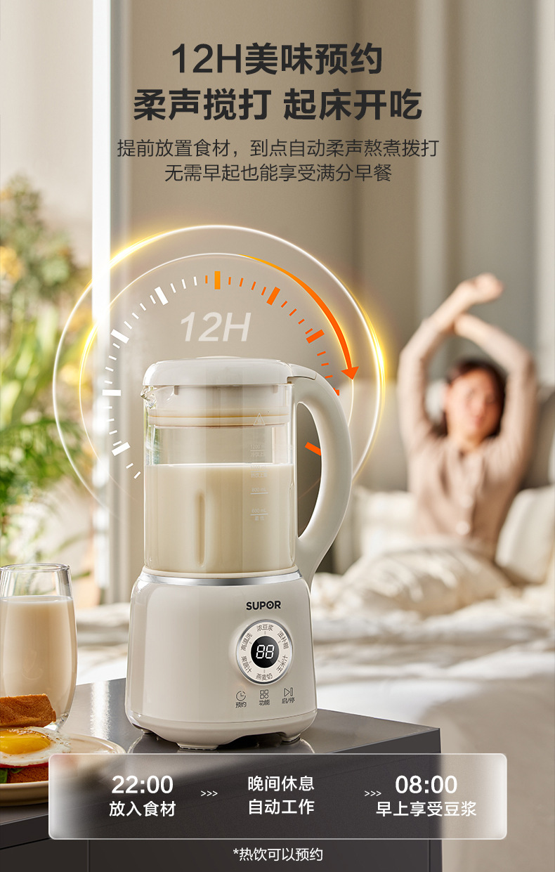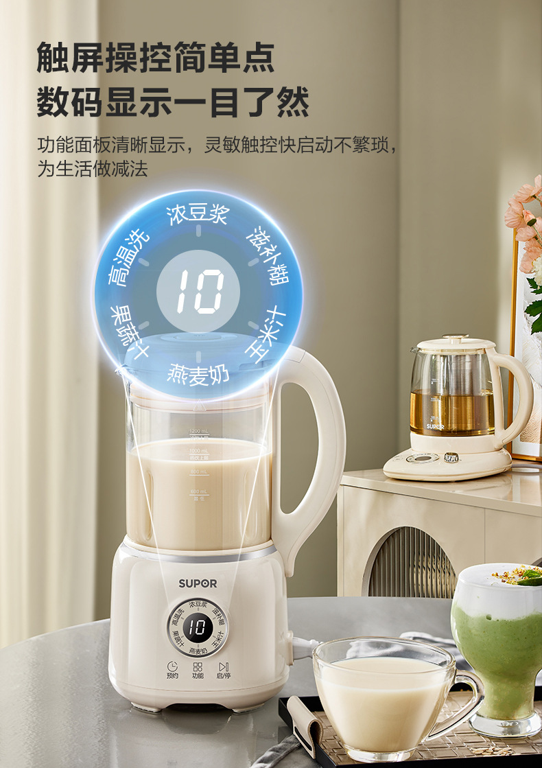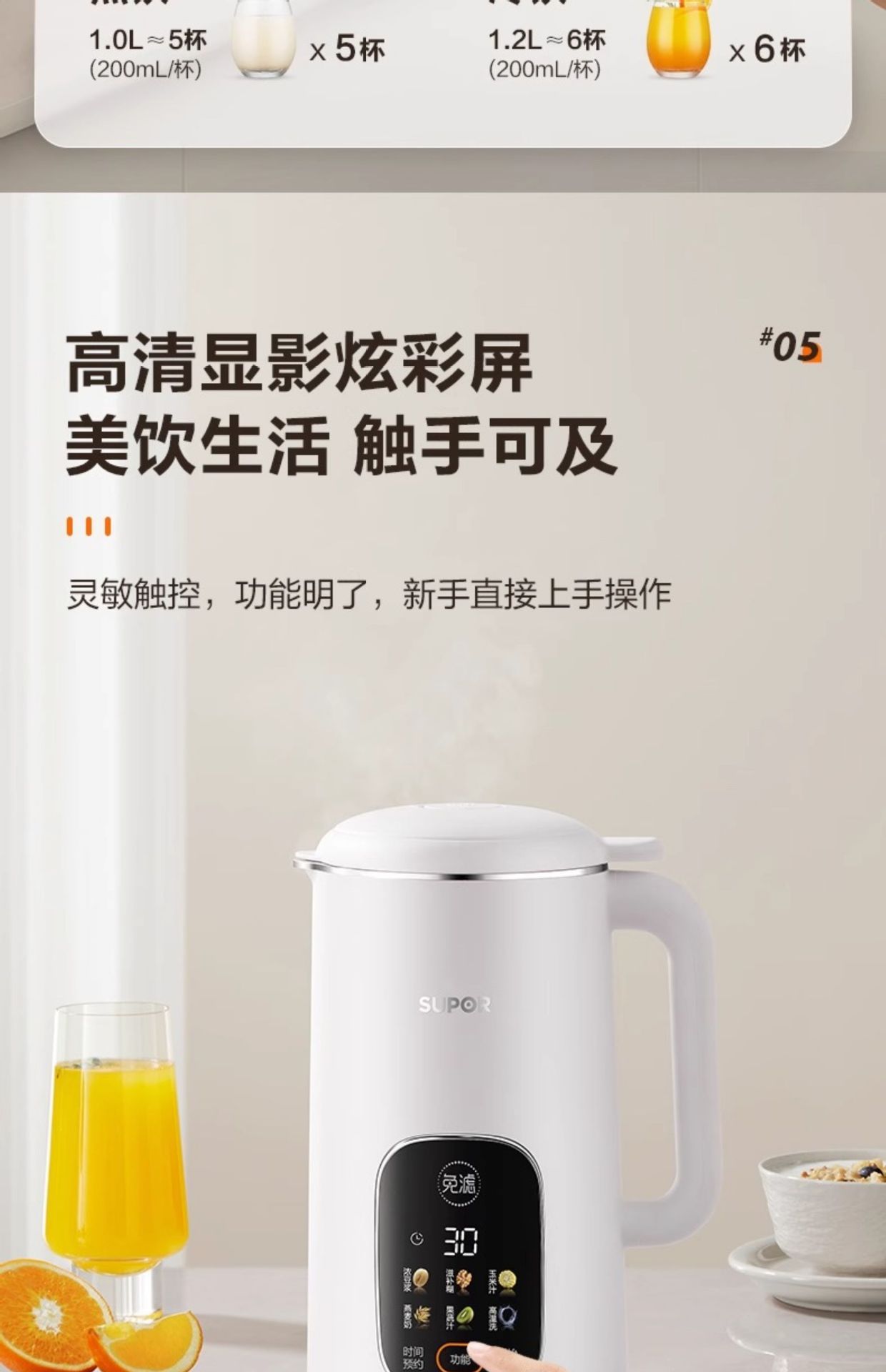 Supor 탈착식 및 세척 가능한 벽 파괴 두유 기계 가정용 자동 요리 기계 다기능 필터 프리 및 조리 프리 DJ701-12스토어 가기