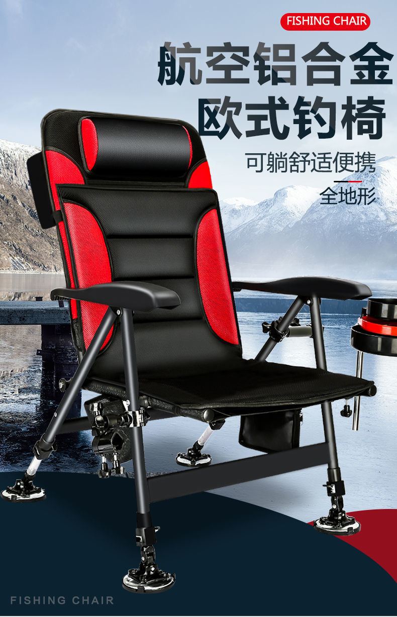 새로운 알루미늄 합금 접이식 낚시 의자 다기능 휴대용 뗏목 낚시 플랫폼 낚시 의자 모든 지형 리클라이닝 유럽 낚시 의자스토어 가기
