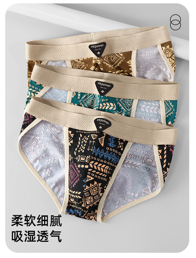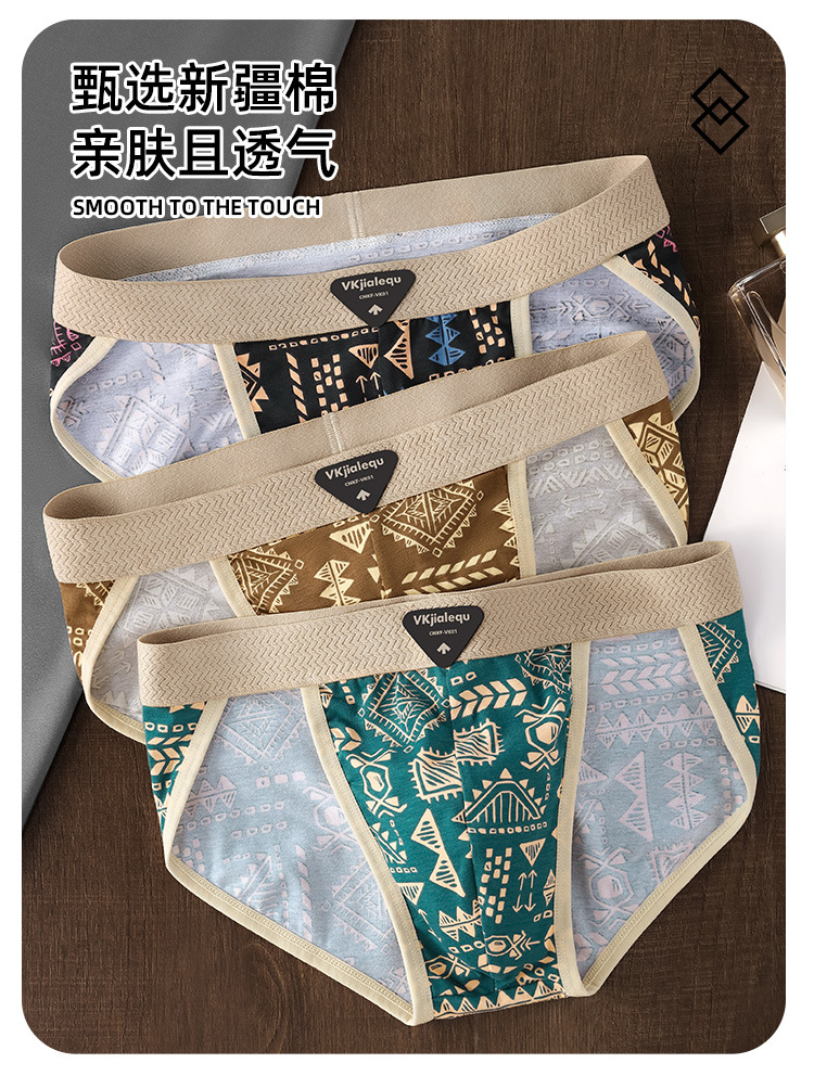 남성 속옷 미국 복고풍 민족 스타일 남성용 팬티 순수 코튼 복서 팬티 통기성 삼각형 트렌드 반바지