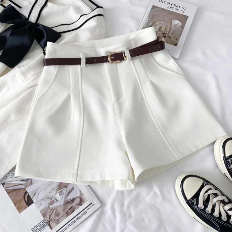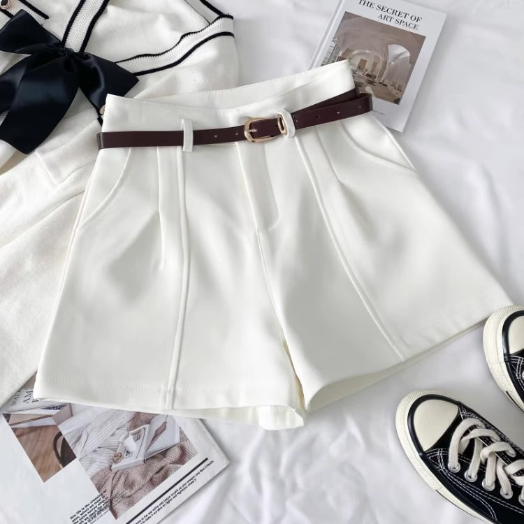 반바지 캐주얼 여성 2025 봄 신작 한국어 버전 ins 홍콩 스타일 복고풍 단순 겉옷 하이 웨이스트 a 라인 와이드 팬츠스토어 가기
