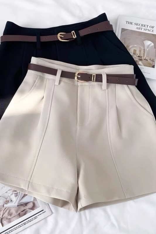 반바지 캐주얼 여성 2025 봄 신작 한국어 버전 ins 홍콩 스타일 복고풍 단순 겉옷 하이 웨이스트 a 라인 와이드 팬츠