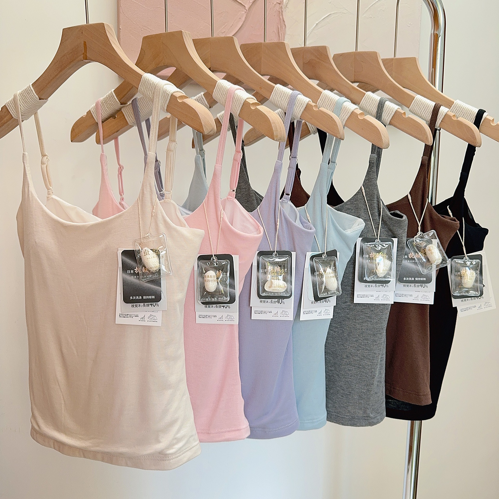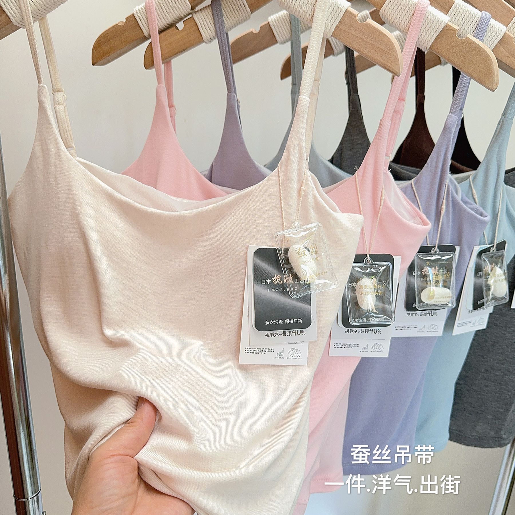 Zhen 실크 요정 이너웨어는 단독으로 착용할 수 있으며 패셔너블한 원라인 칼라 스파게티 스트랩, 시원하고 피부 친화적인 멀버리 실크 캐미솔입니다.스토어 가기