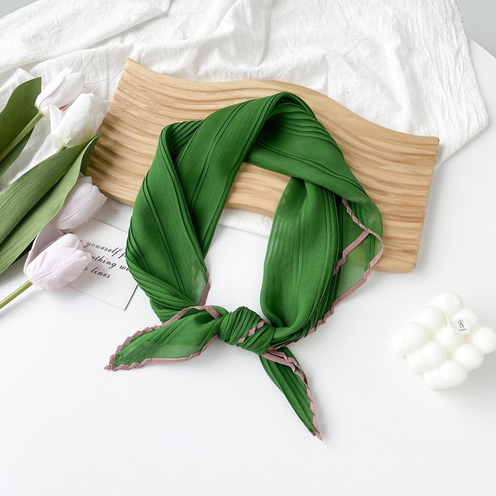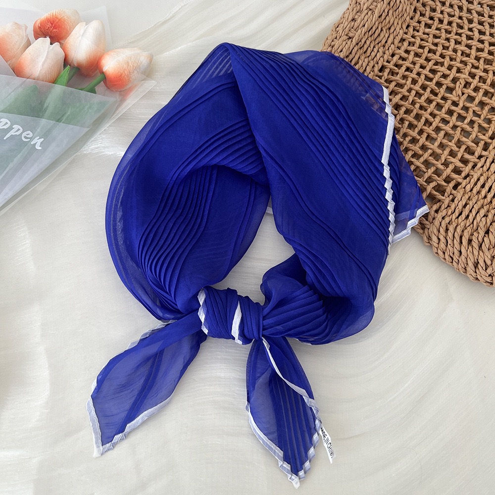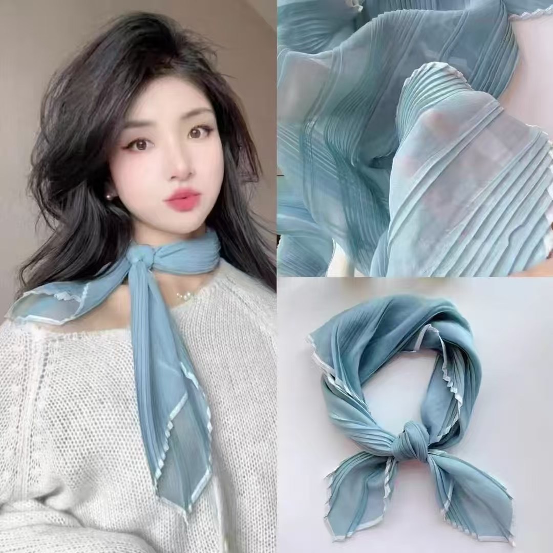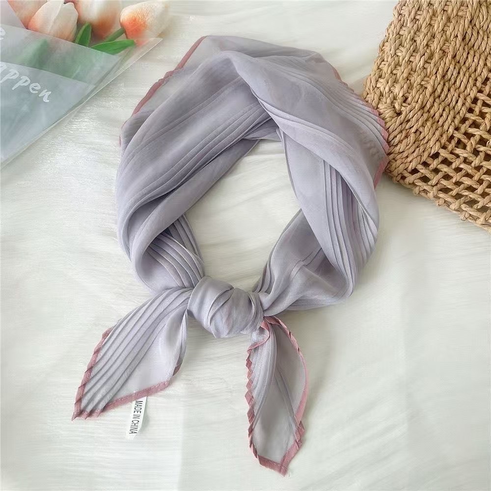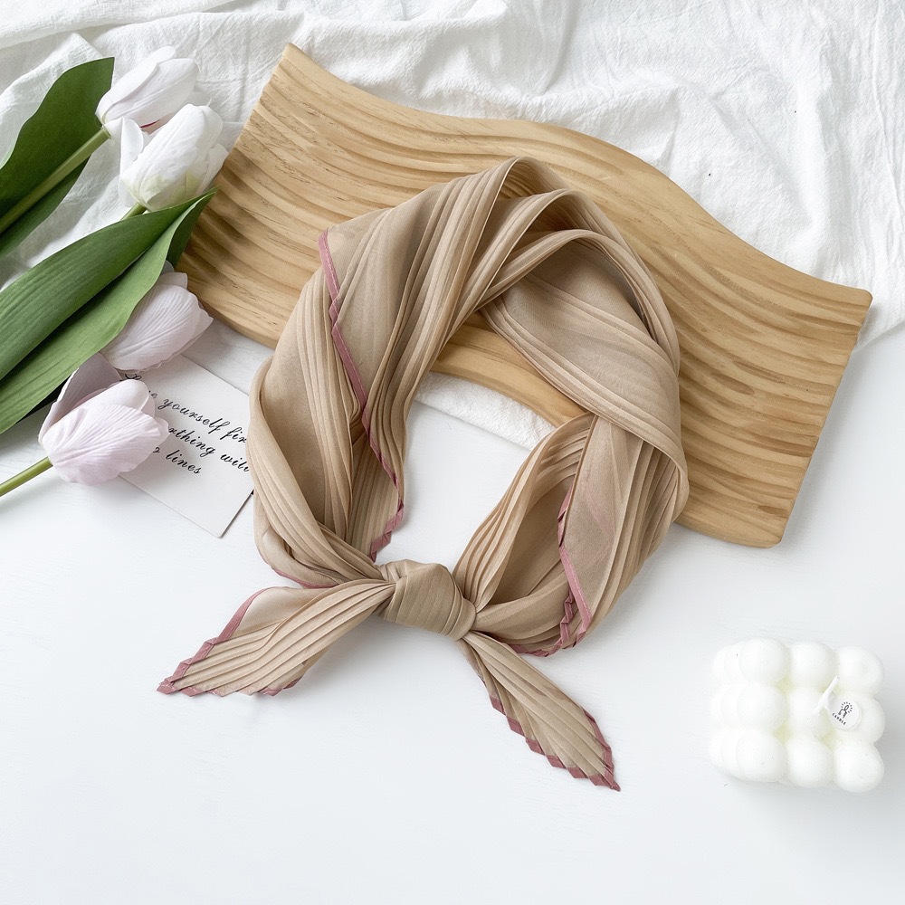 여름 소녀들을 위한 일본과 한국의 주름진 실크 스카프, 달콤한 분위기, 솔리드 컬러의 고급 스카프, 70스퀘어 스카프스토어 가기