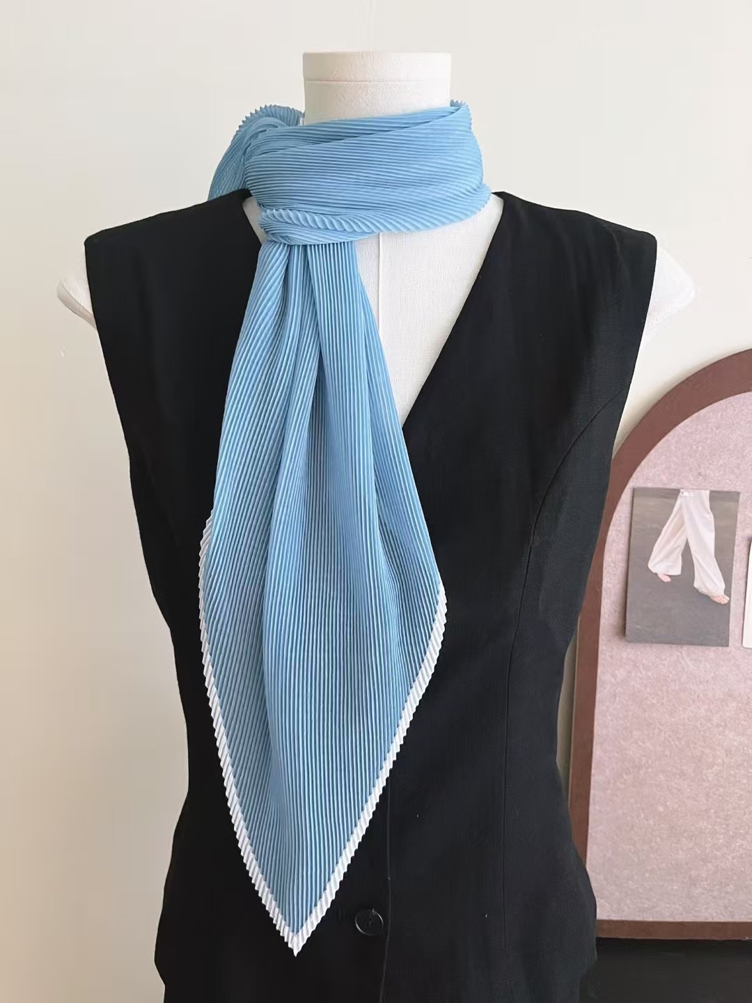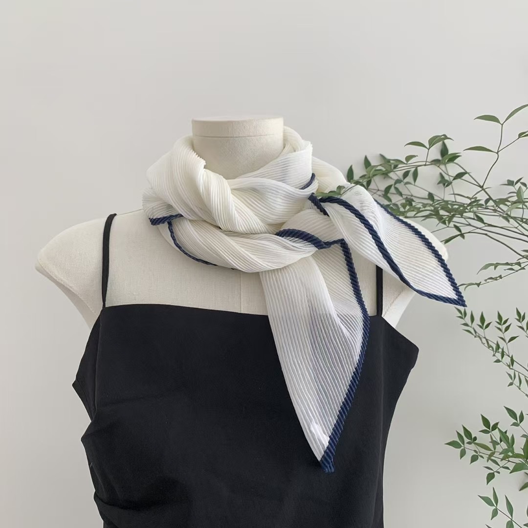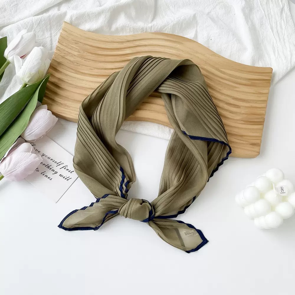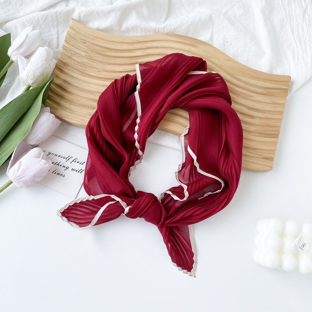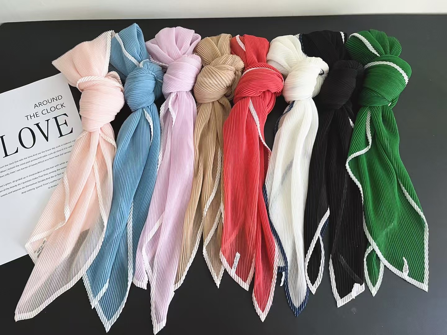여름 소녀들을 위한 일본과 한국의 주름진 실크 스카프, 달콤한 분위기, 솔리드 컬러의 고급 스카프, 70스퀘어 스카프스토어 가기