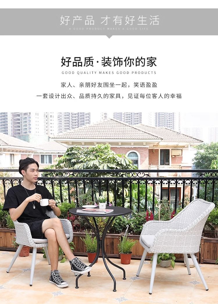 야외 등나무 의자 발코니 레저 테이블과 의자 빌라 안뜰 정원 테라스 부식 방지 목재 플라스틱 목재 미국 식탁과 의자 세트스토어 가기