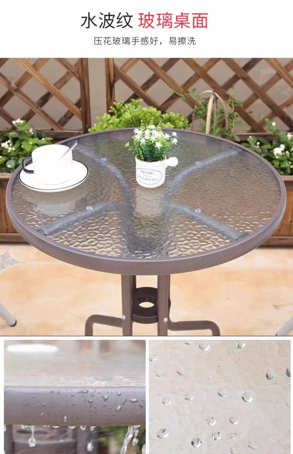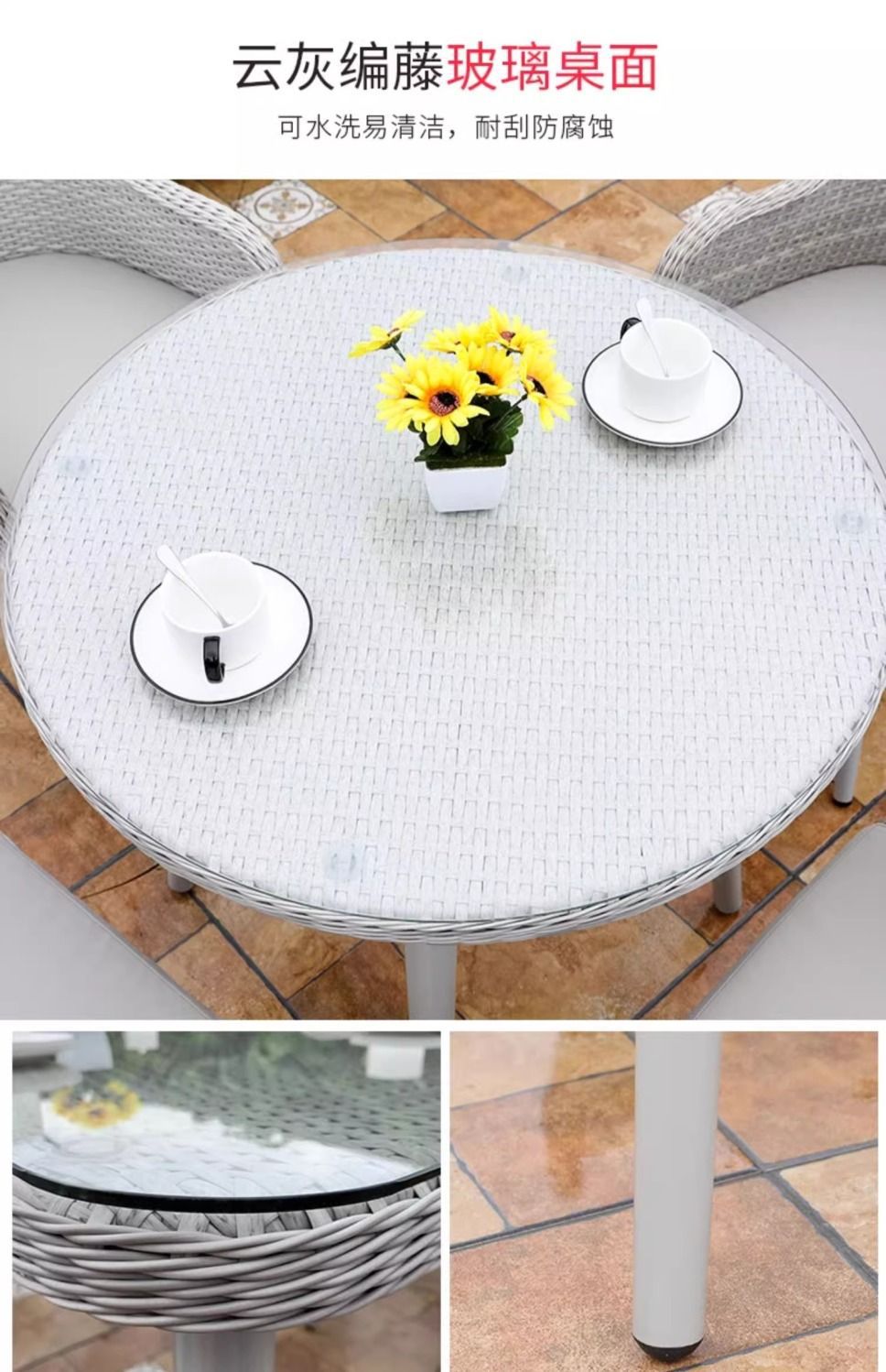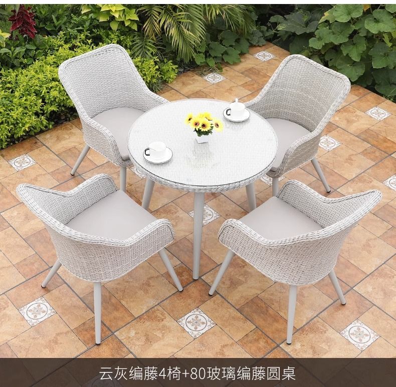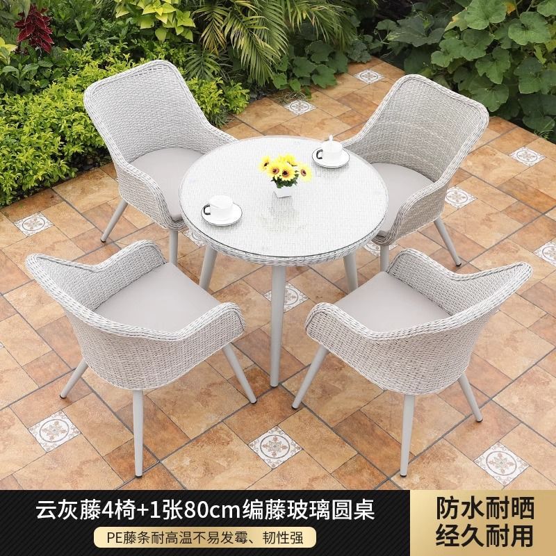 • 의자 4개 + 80cm 등나무 유리 원형 테이블