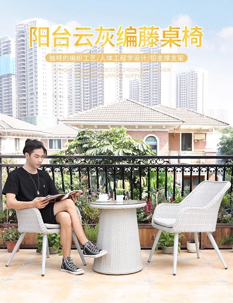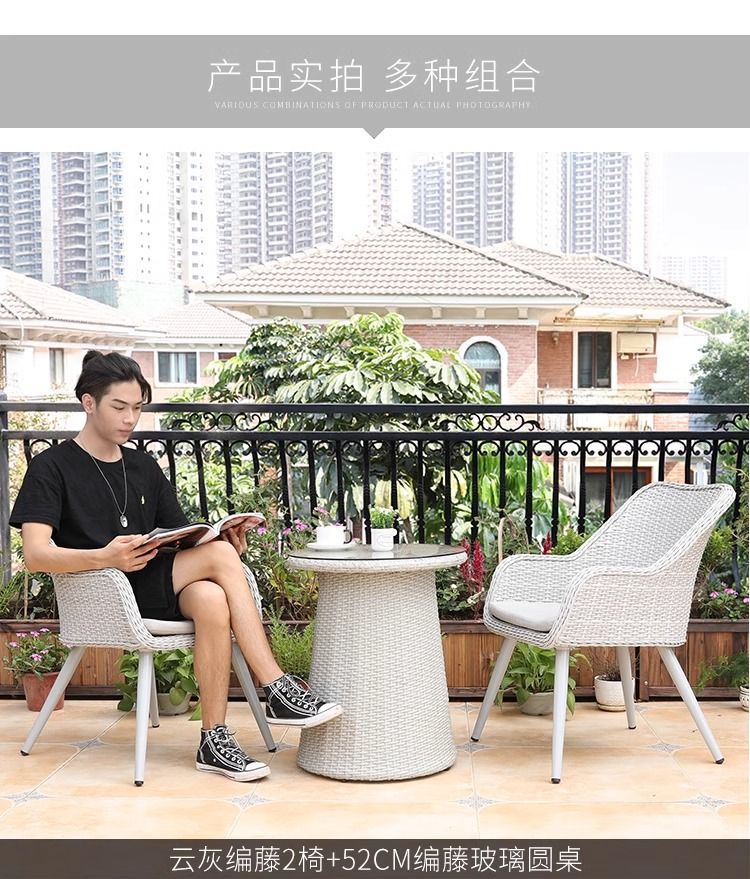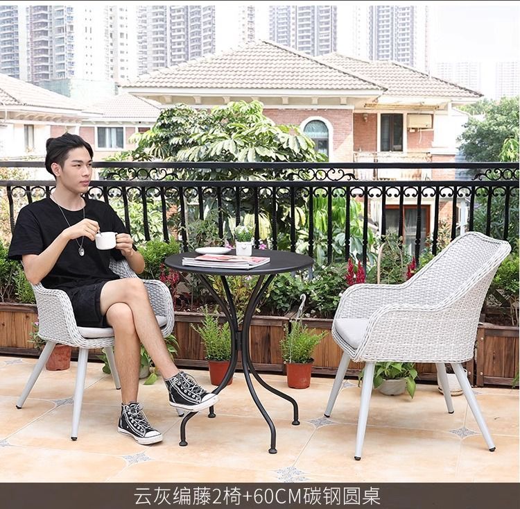 • 의자 2개 + 높이 52CM 61CM 등나무 작은 커피 테이블