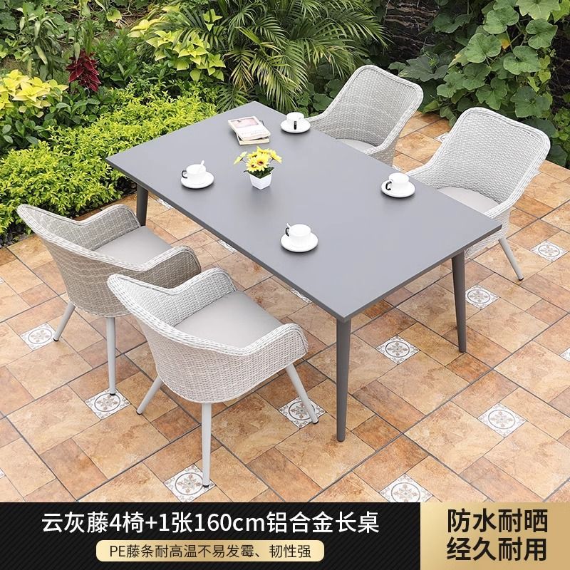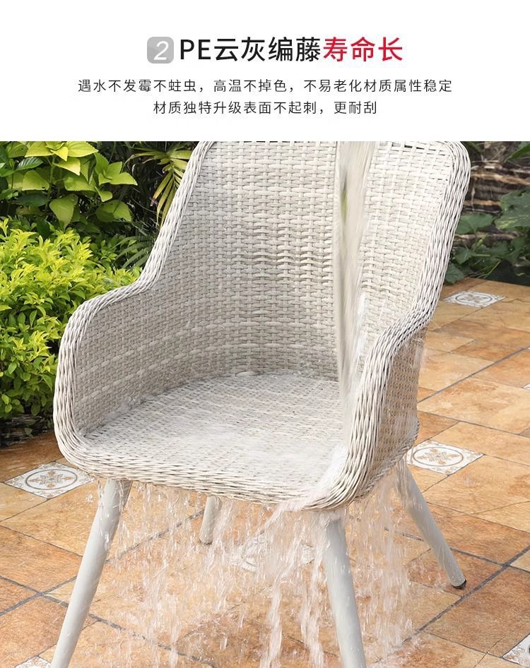 야외 등나무 의자 발코니 레저 테이블과 의자 빌라 안뜰 정원 테라스 부식 방지 목재 플라스틱 목재 미국 식탁과 의자 세트