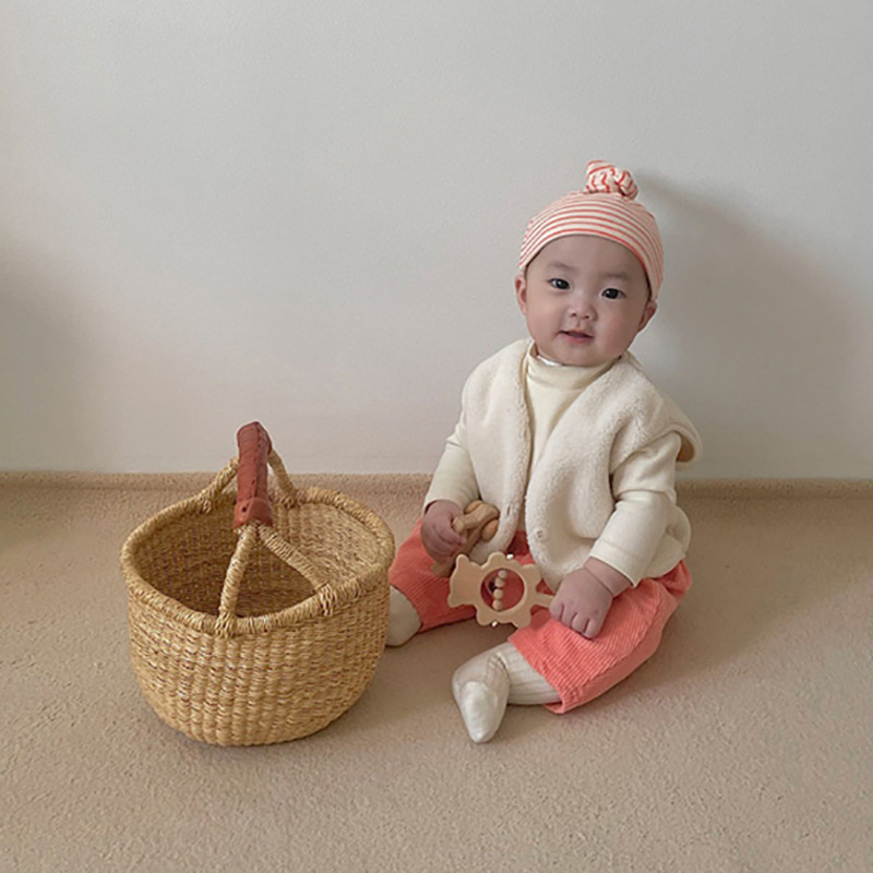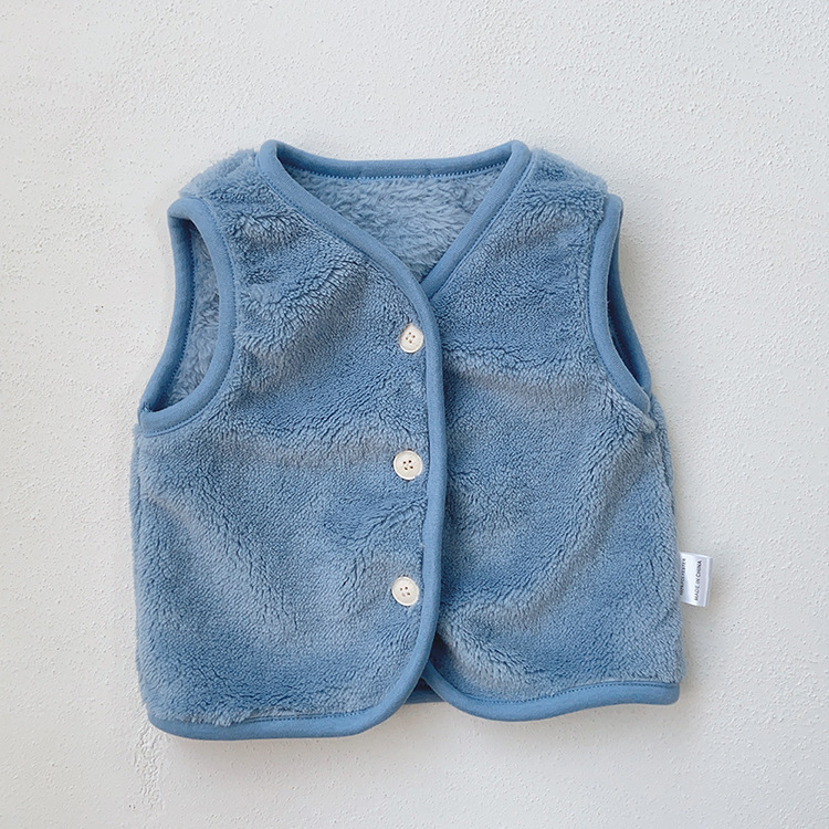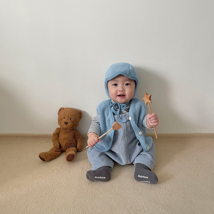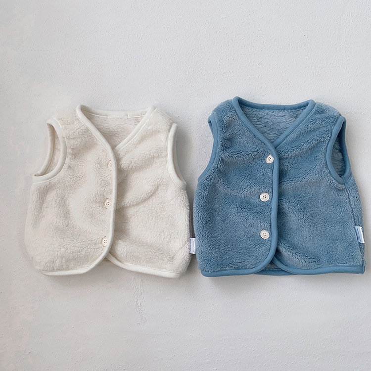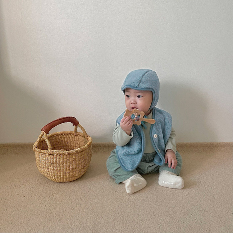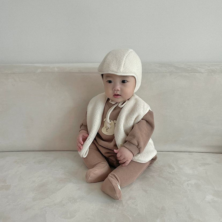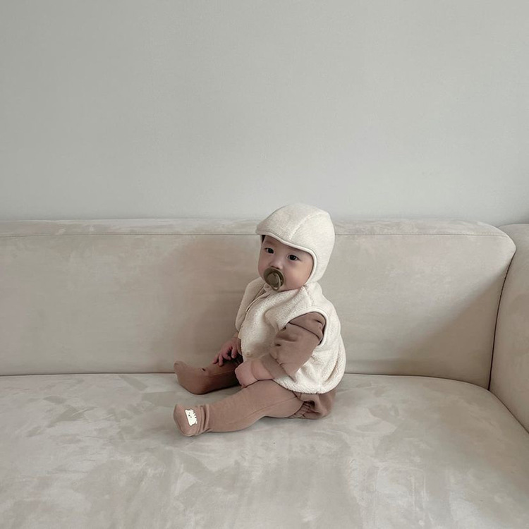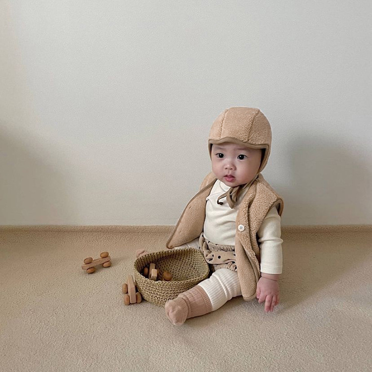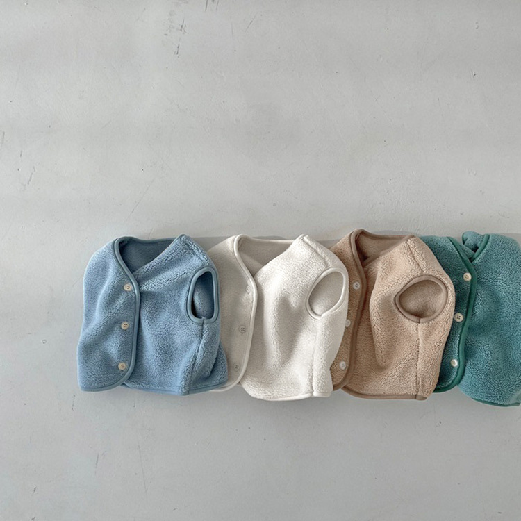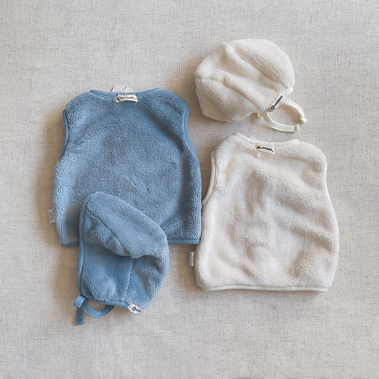가을 아기 조끼 2025 소년과 소녀 오픈 가슴 싱글 브레스트 플러시 조끼 아기 솔리드 컬러 양복 조끼 모자스토어 가기