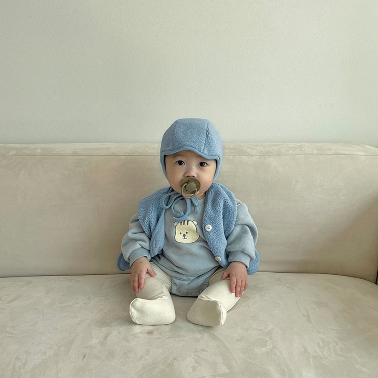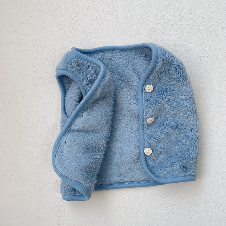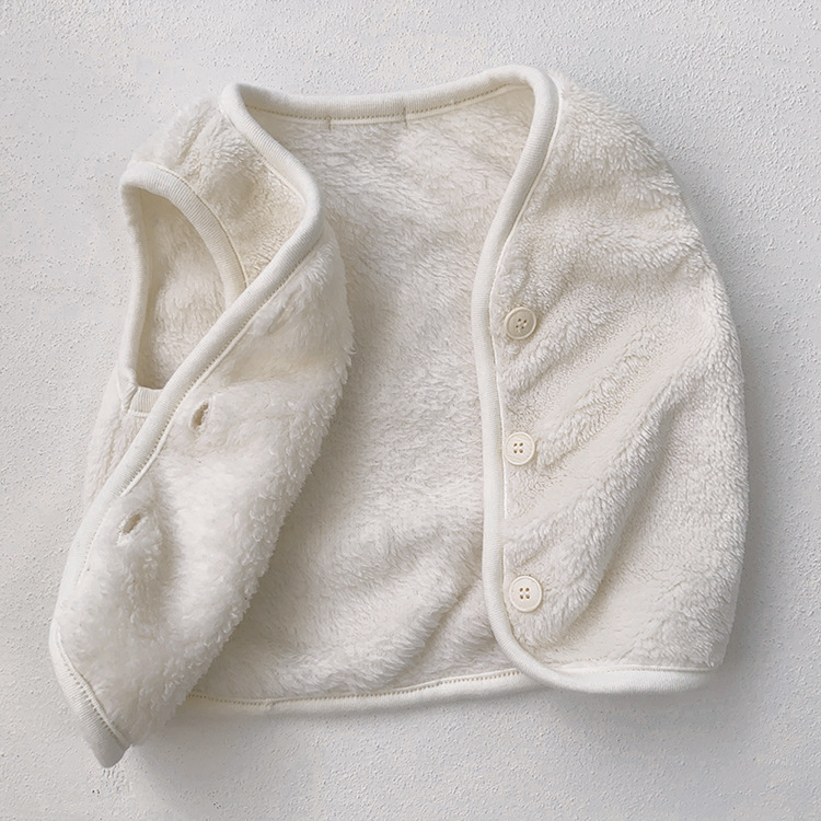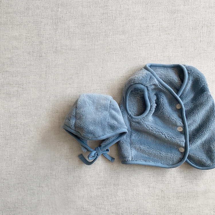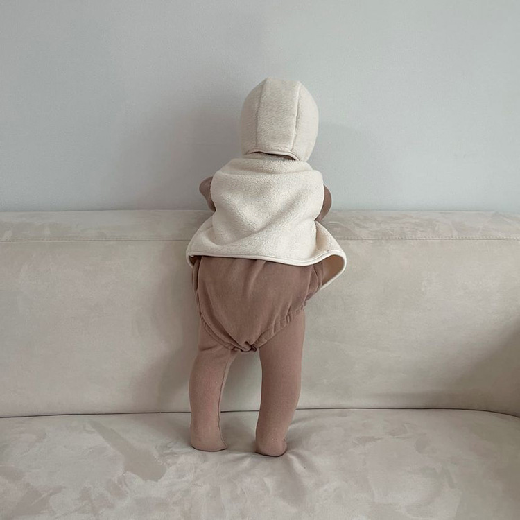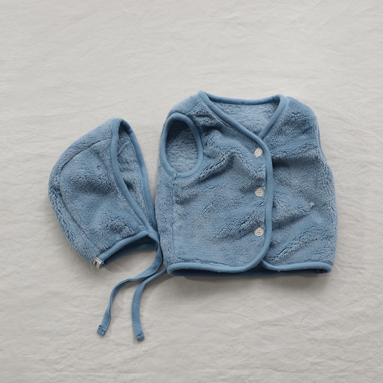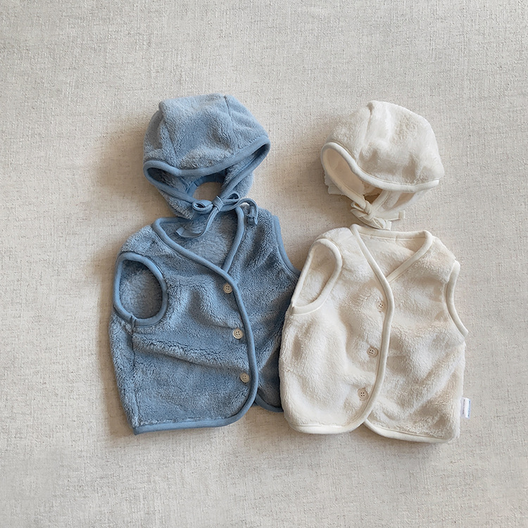 가을 아기 조끼 2025 소년과 소녀 오픈 가슴 싱글 브레스트 플러시 조끼 아기 솔리드 컬러 양복 조끼 모자