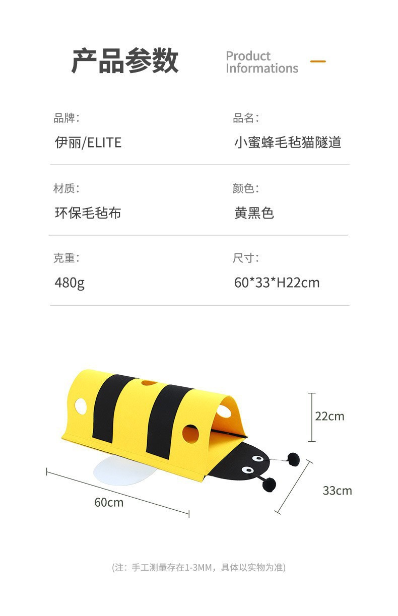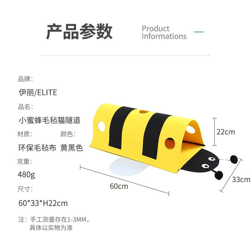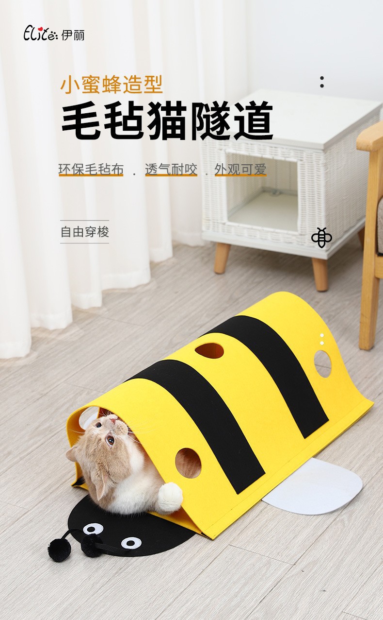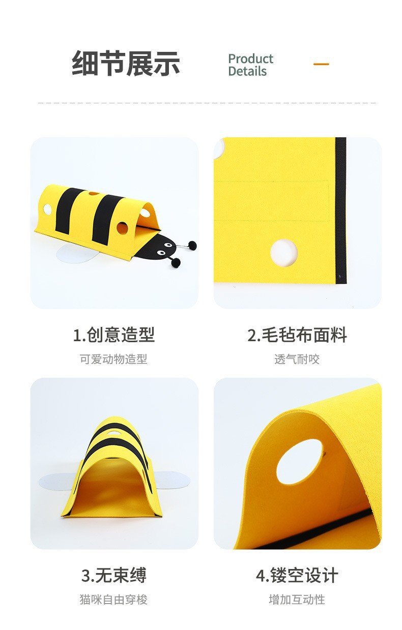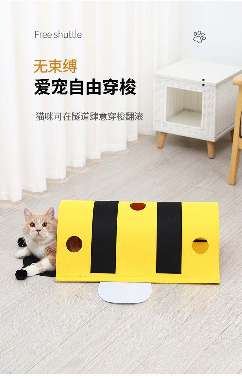 애완 동물 고양이 장난감 작은 꿀벌 고양이 터널 자체 즐거움과 지루함 해소 벨크로 이동식 고양이 터널 제조 업체 도매