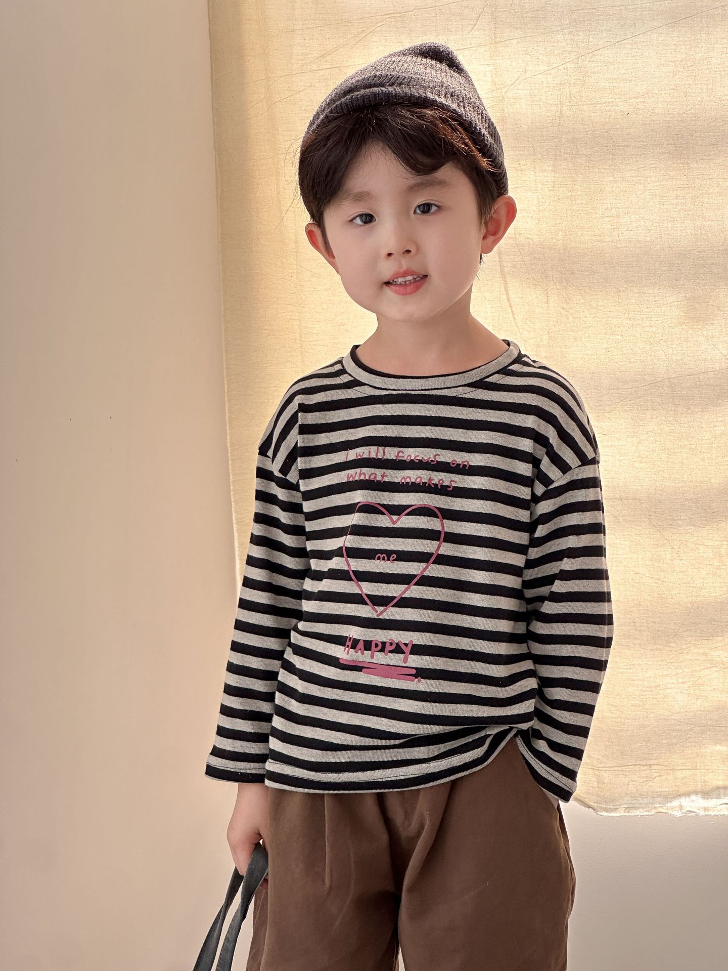 아동용 긴팔 티셔츠 순면 풀 스트라이프 소년 가을 느슨한 소녀 2025 새로운 봄, 가을 베이비 탑스토어 가기