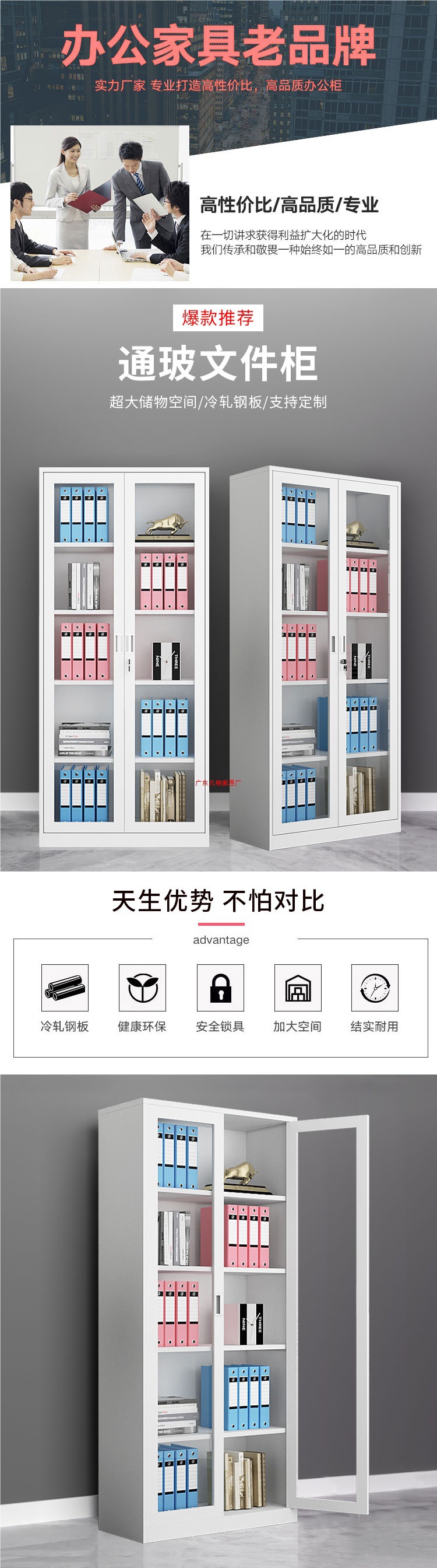 강철 사무실 전체 유리 양문 파일 철 책장 정보 비밀번호 잠금 인증서 파일 캐비닛스토어 가기