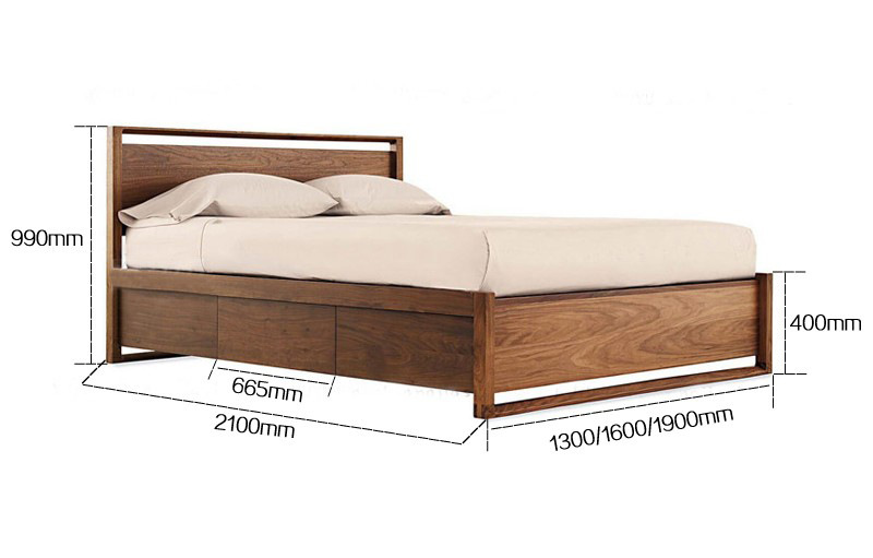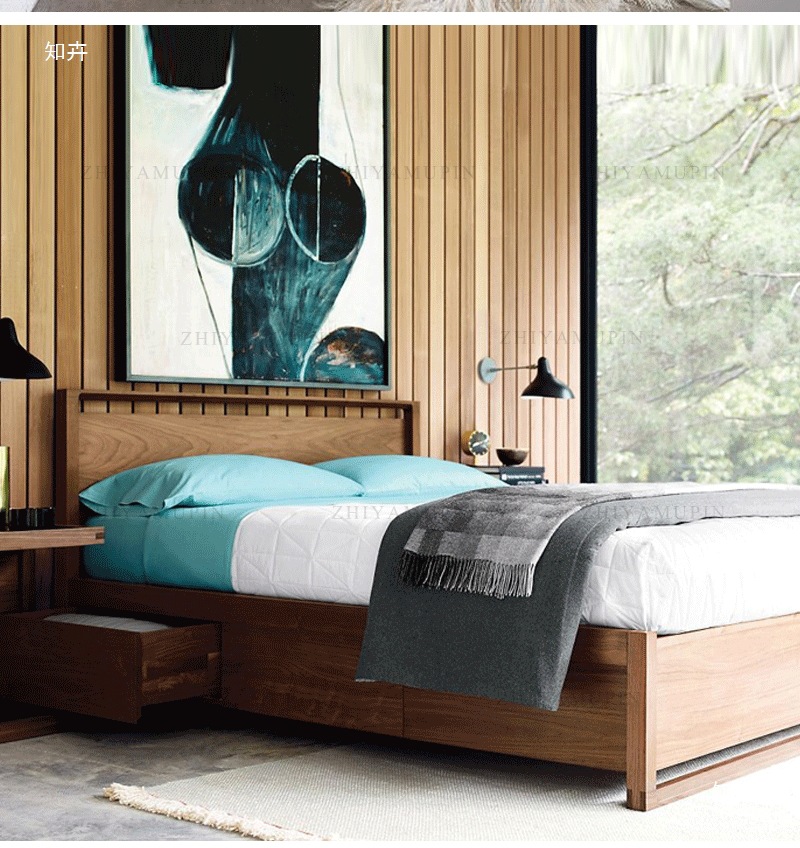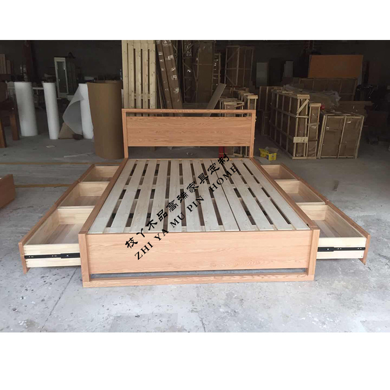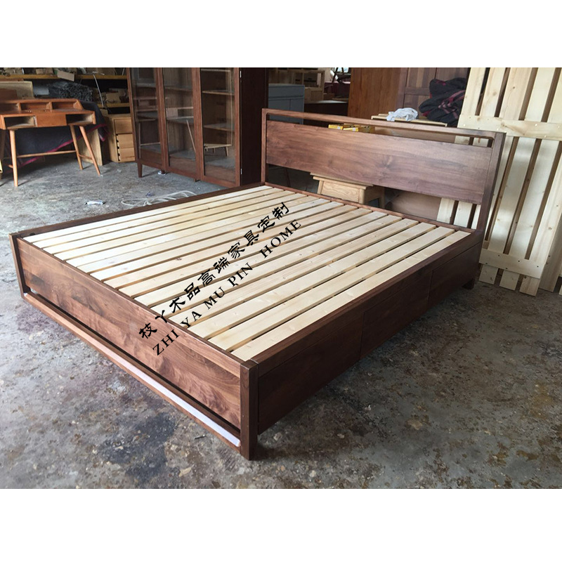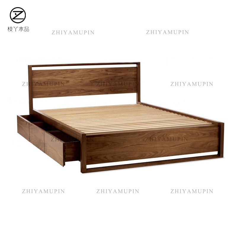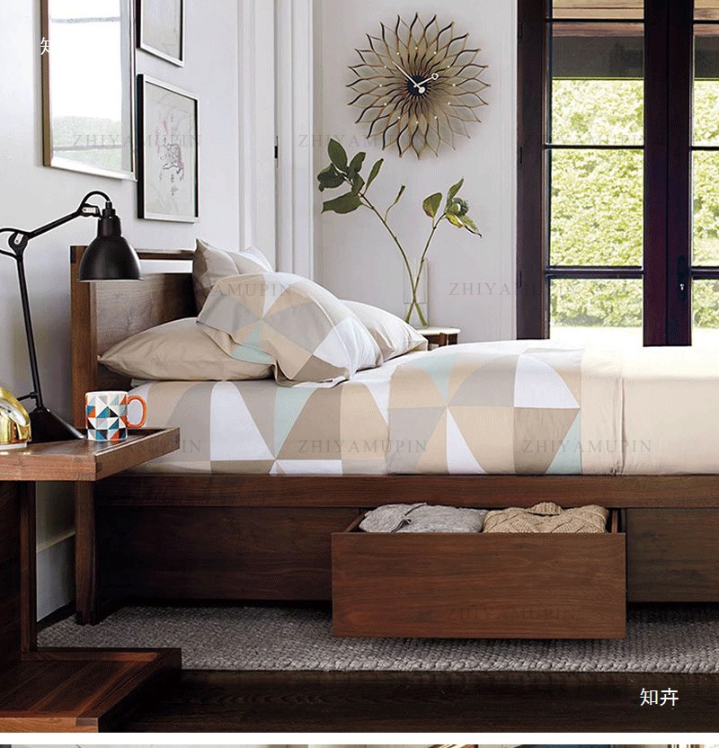 맞춤형 순수 원목 서랍 침대, 심플한 오크 박스 수납 침대, 일본식 블랙 호두 침실 통나무 가구 공장스토어 가기