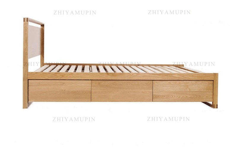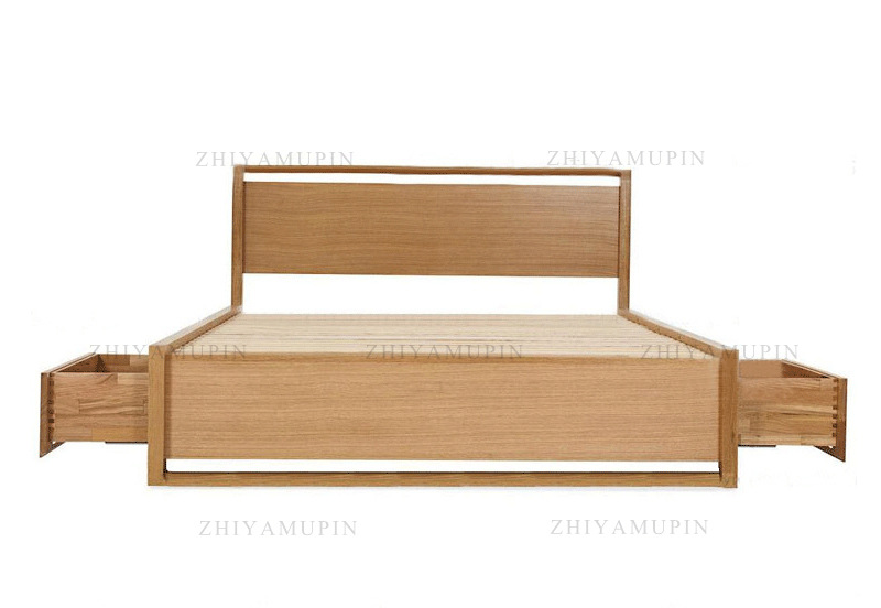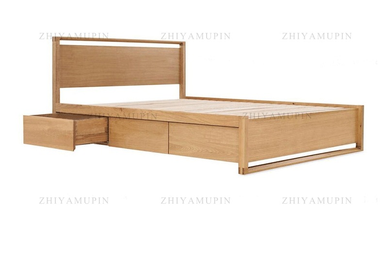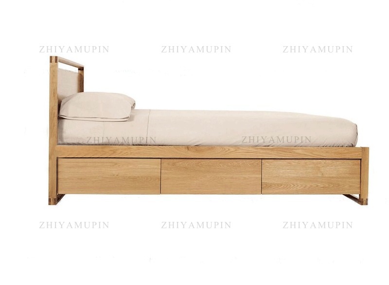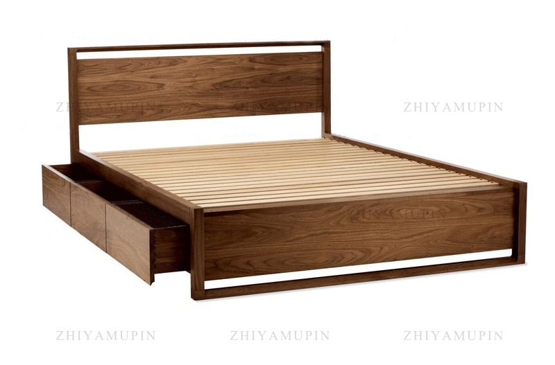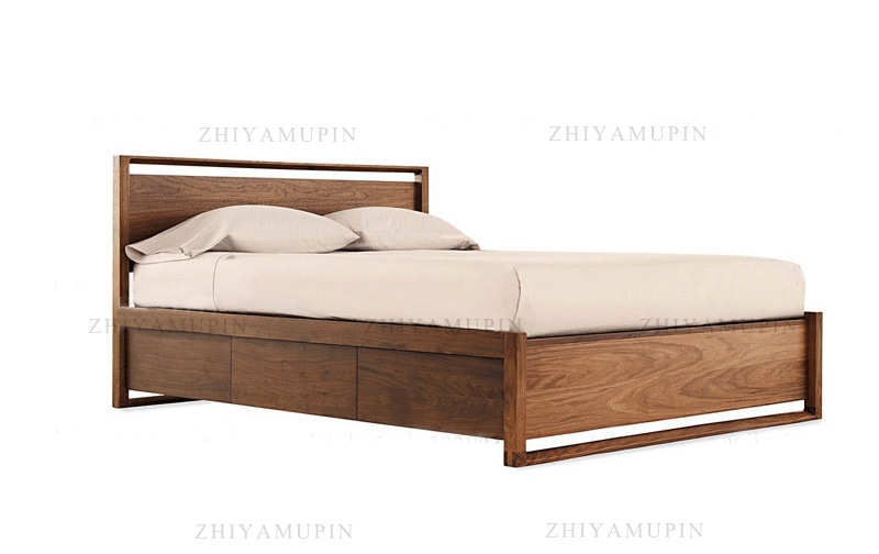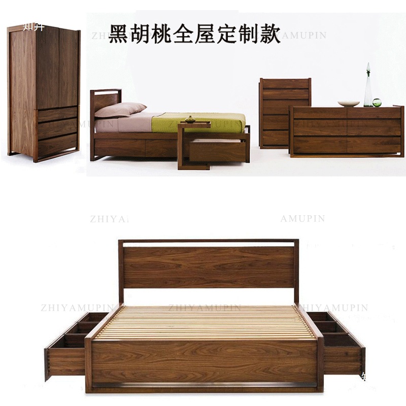 맞춤형 순수 원목 서랍 침대, 심플한 오크 박스 수납 침대, 일본식 블랙 호두 침실 통나무 가구 공장