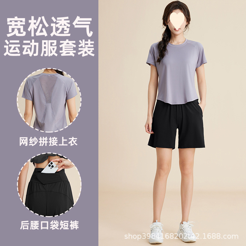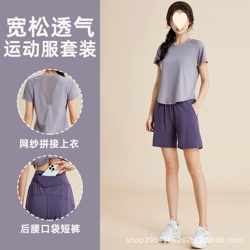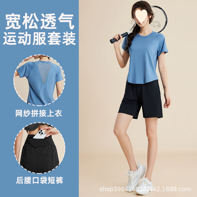 플러스 사이즈 러닝 피트니스 스포츠 슈트 속건성 여름 얇은 느슨한 요가 반팔 운동복 국경 간 도매스토어 가기