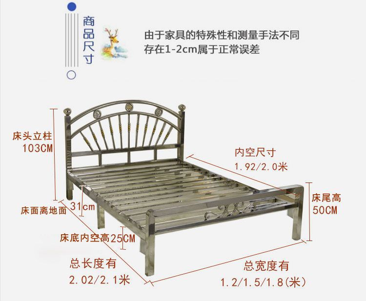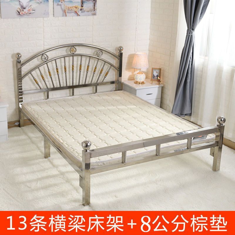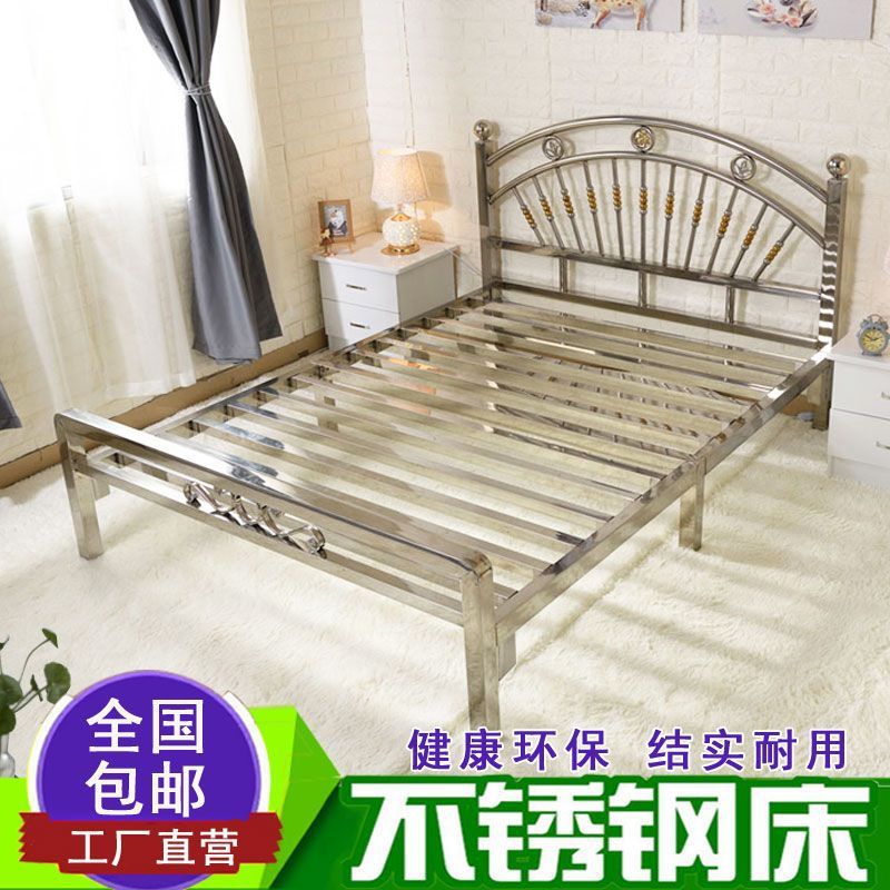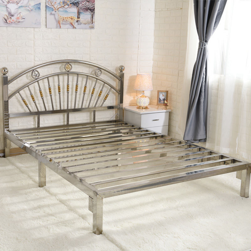 스테인레스 스틸 침대 1.68m 더블 유럽 스타일 철 침대 현대 미니멀리스트 임대 룸 접합 강철 프레임 침대 304