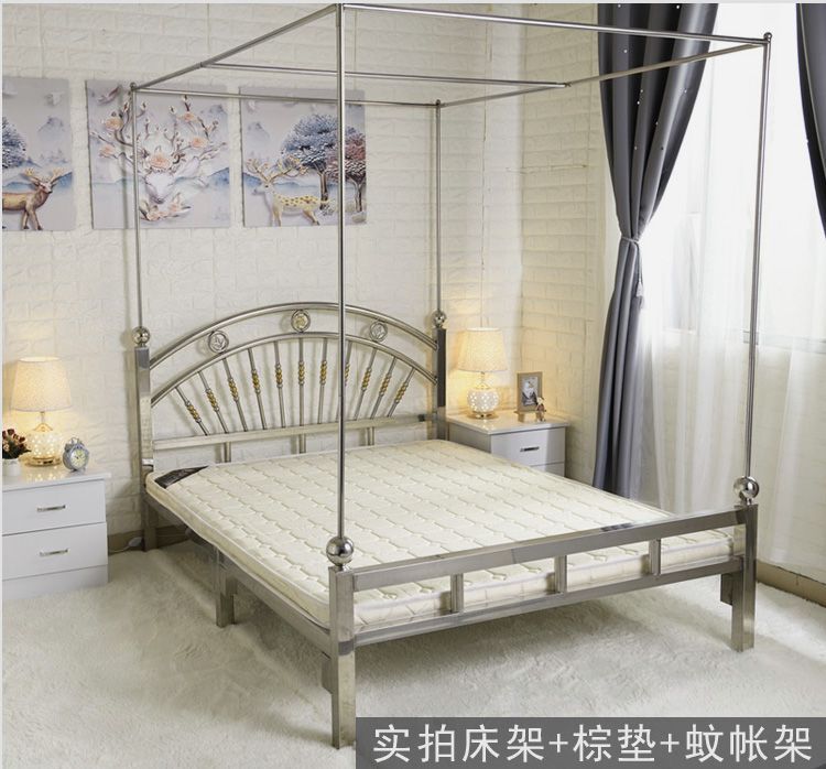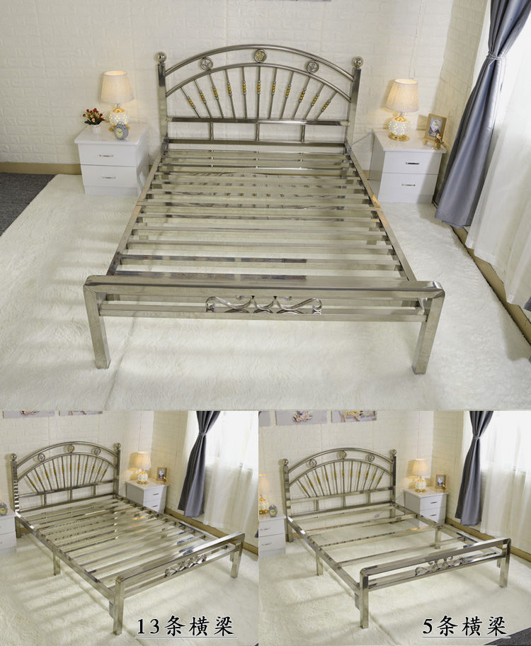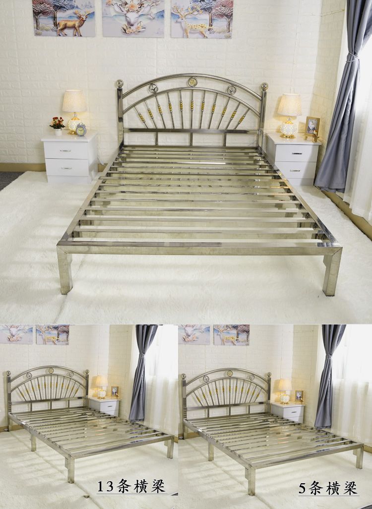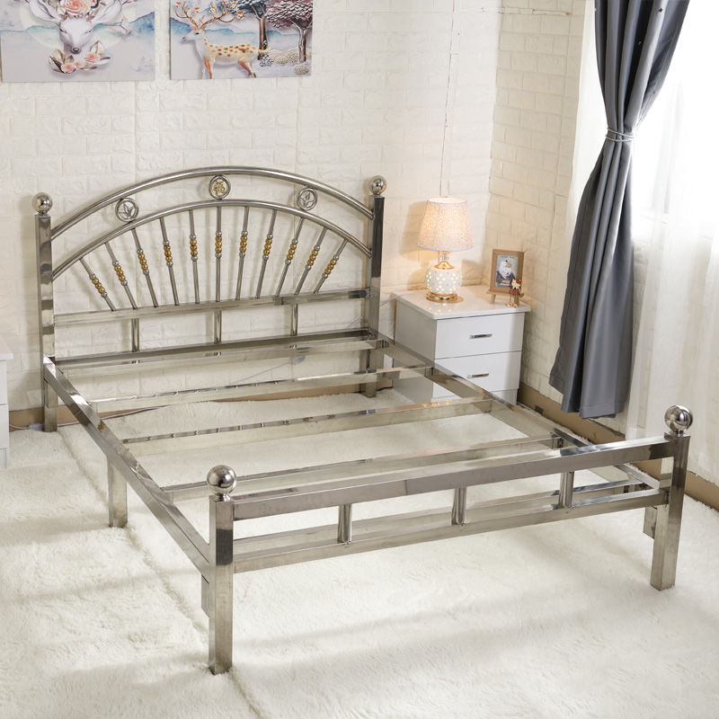 스테인레스 스틸 침대 1.68m 더블 유럽 스타일 철 침대 현대 미니멀리스트 임대 룸 접합 강철 프레임 침대 304스토어 가기
