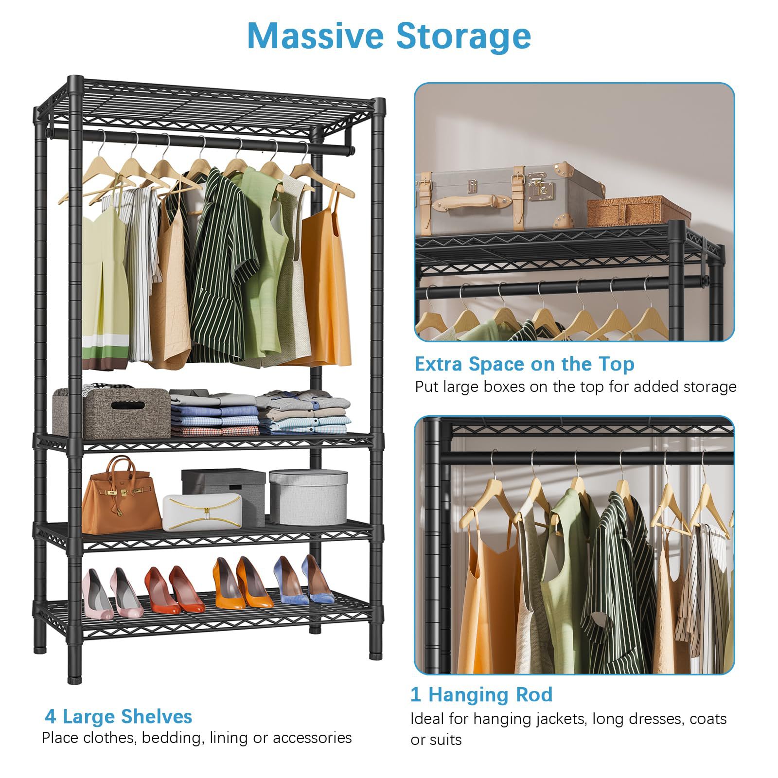 맞춤형 옷장 홈 침실 조절 가능한 옷장 옷 보관 랙 의류 디스플레이 공간 절약형 보관 및 정리 랙
