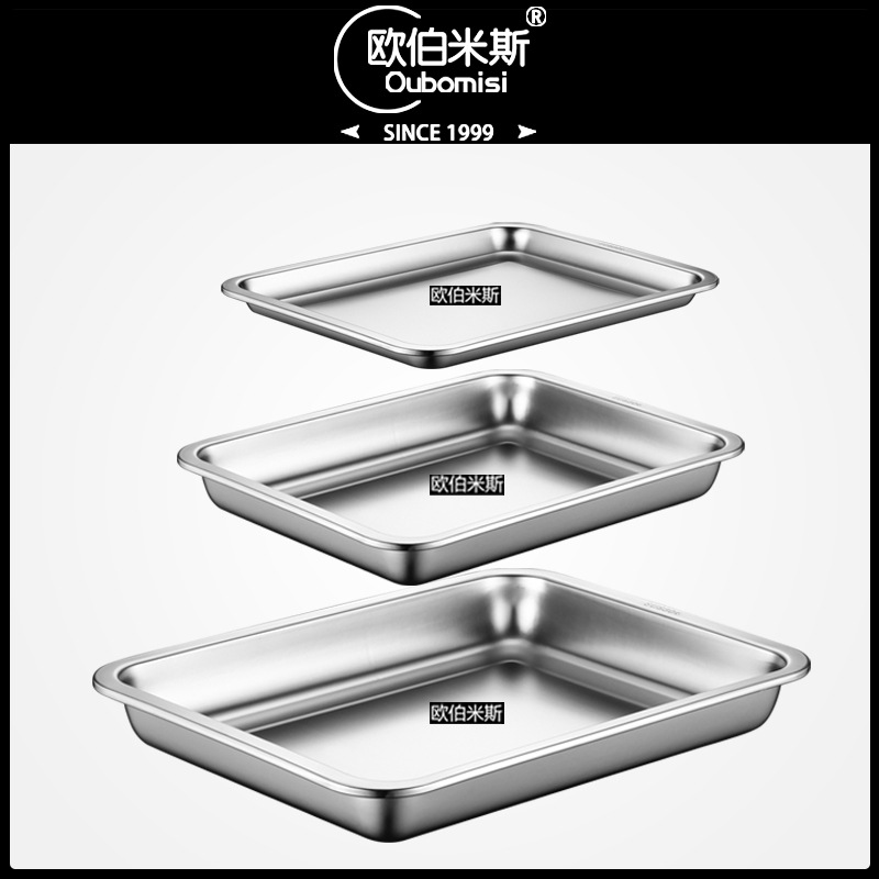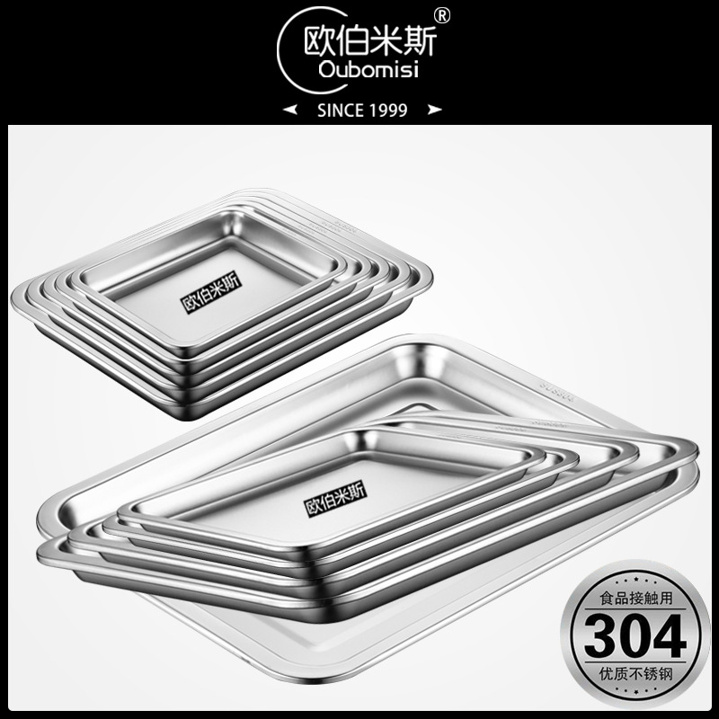 Elifan Obermis 304 스테인레스 스틸 사각 접시 두꺼운 트레이 스테인레스 스틸 구운 생선 접시 찜 밥 접시 다중 사양스토어 가기