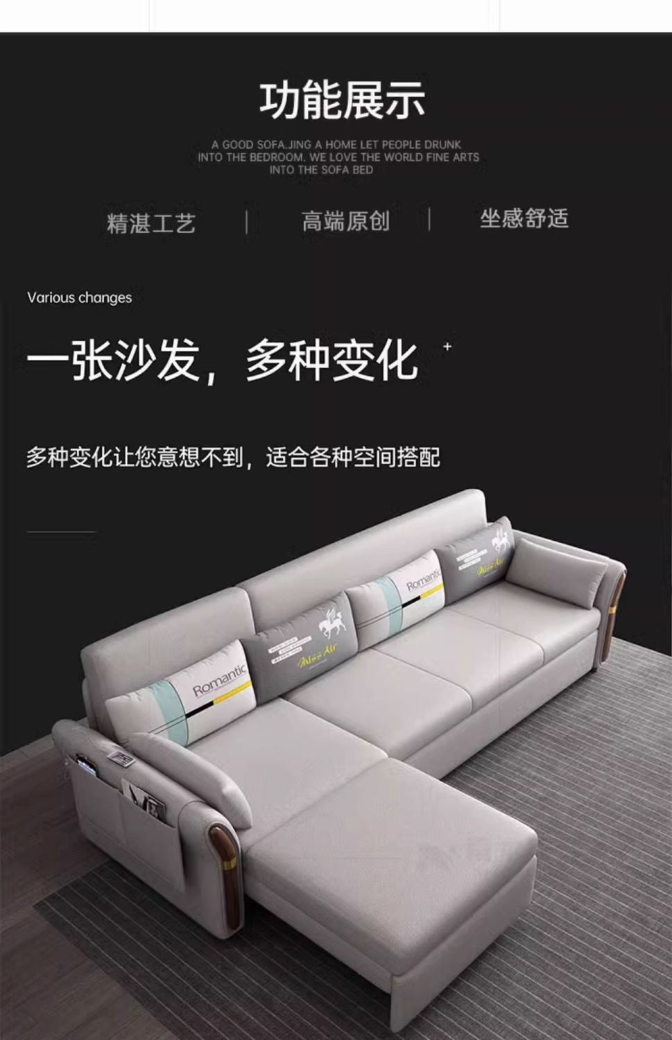 리클라이너 소파 베드, 다기능, 접이식, 소형 거실, 서재, 2인용, 수면 및 수납 공간