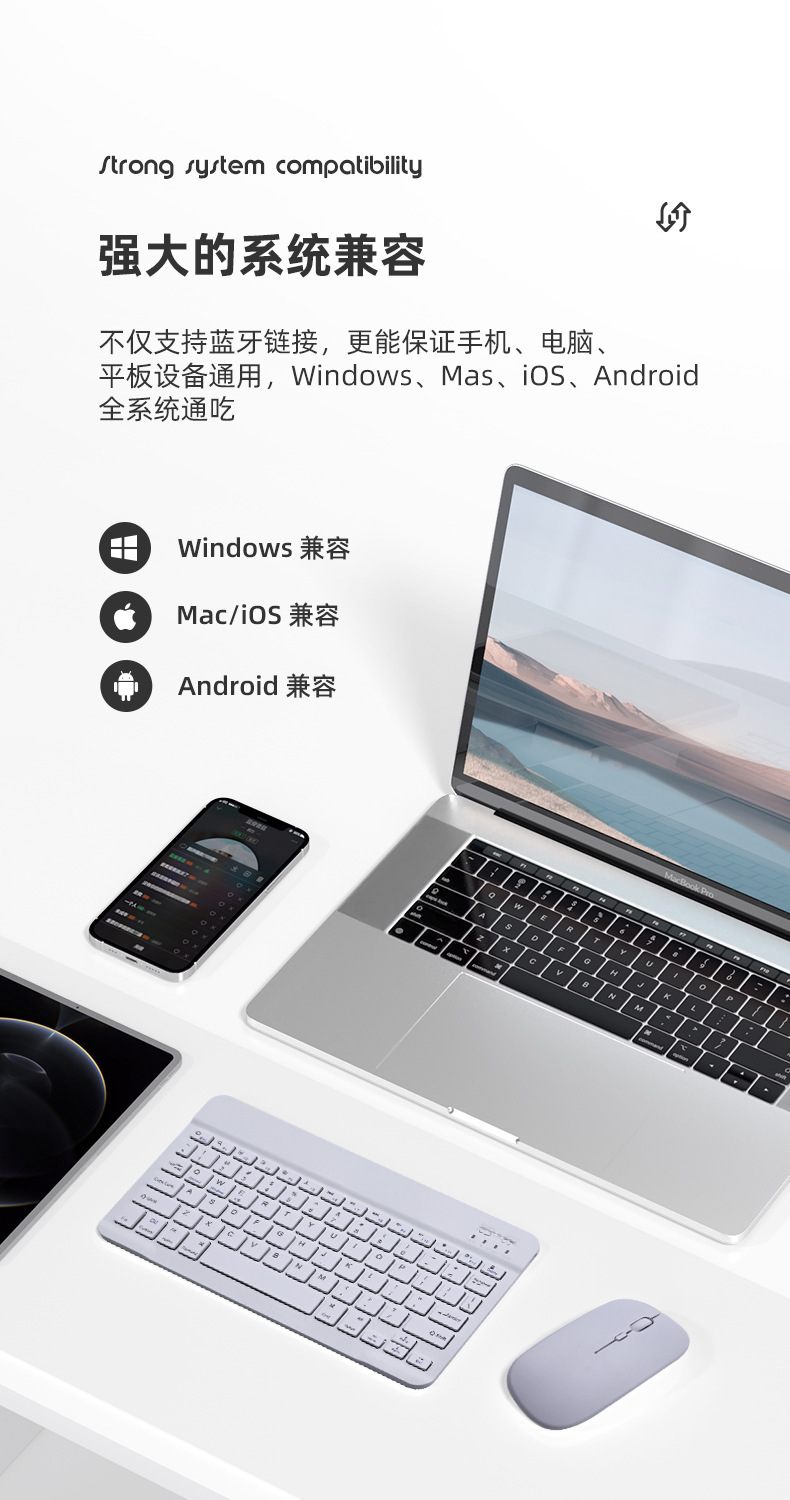 공장 스팟 무선 블루투스 무음 오피스 미니 컴퓨터 태블릿 노트북 충전식 키보드 및 마우스 세트