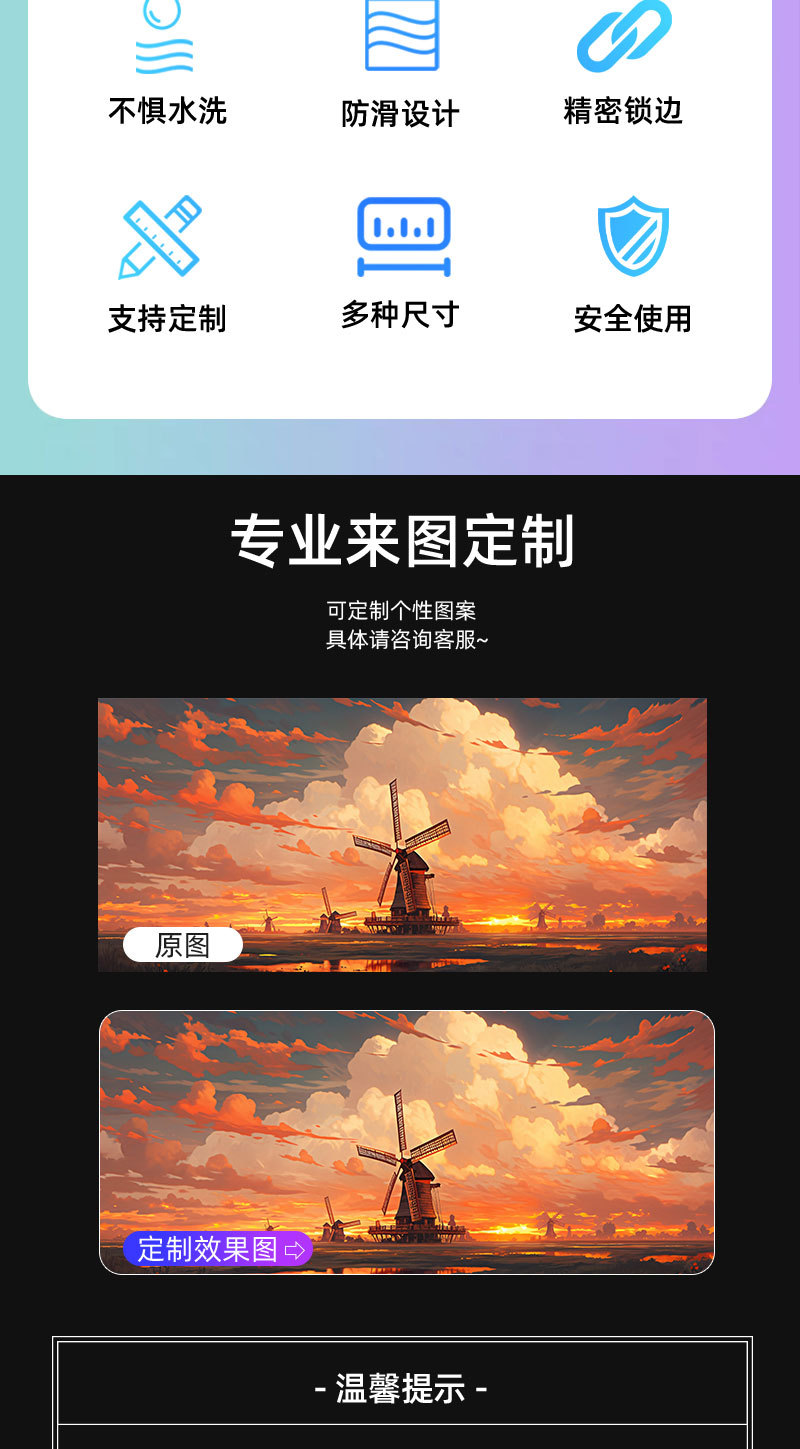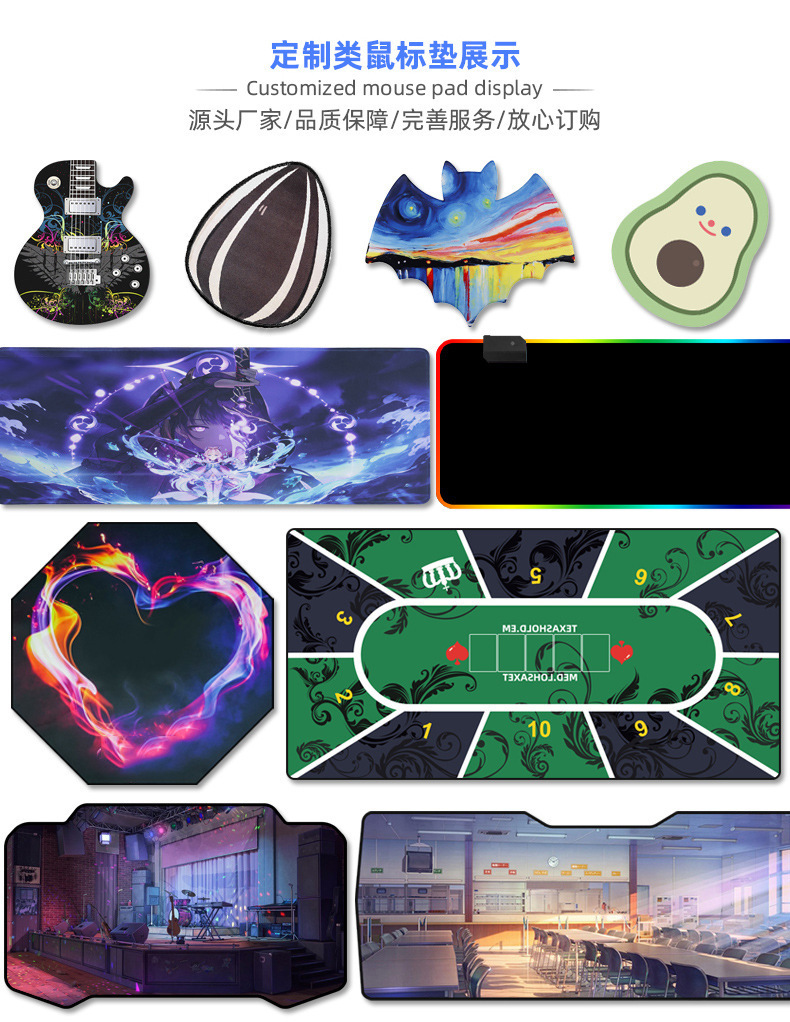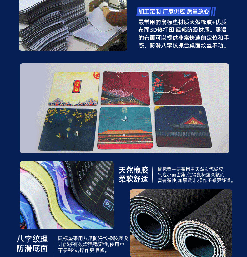 4、我们工厂备有大量白布面现货鼠标垫,多数都是以客户需求才开始生产,因为鼠标垫的图片太多了,每个客人需求都不同,更新速度又很快,客人拍什么我们再做什么,不接受拍了我们生产了再退货,因为印刷了不好处理了,所以请提前要确认清楚;特殊情况可以协商帮助客人处理遇到的难处。
