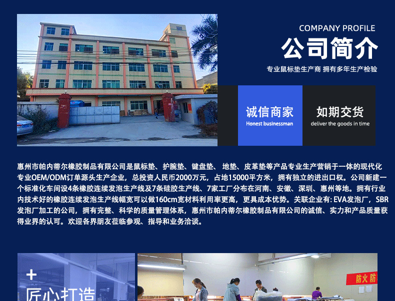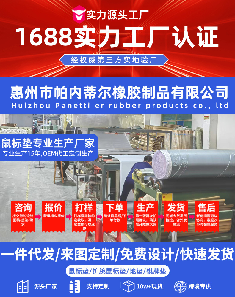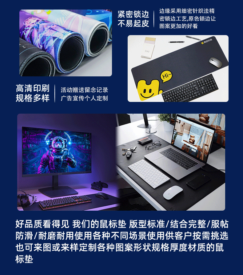 6、特殊要求,特殊规格,特殊形状,我们都可以做的。只要您提出要求,我们都会竭尽所能的满足。我公司在鼠标垫专注多年代工经验。
