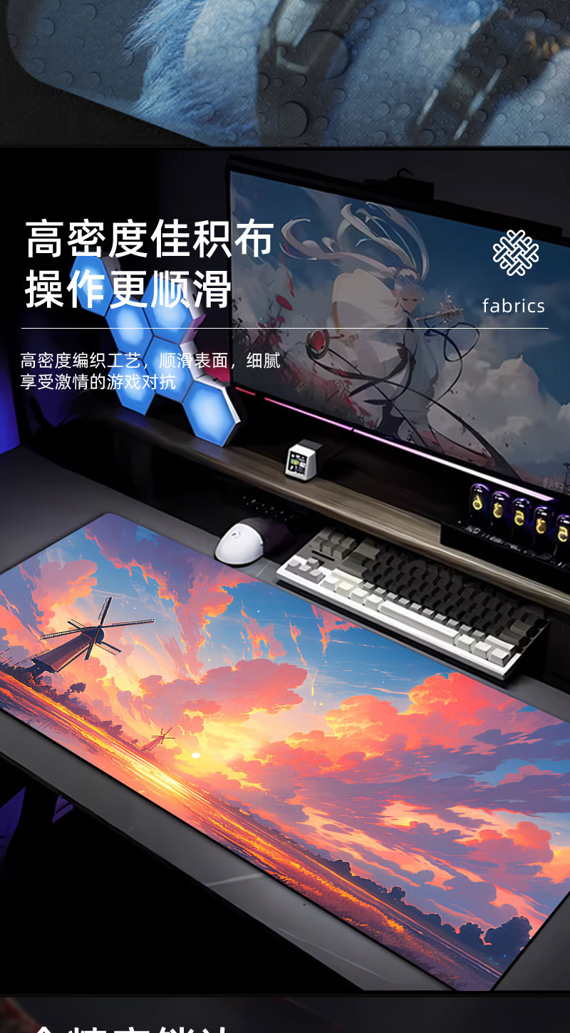 1.布面采用了密度好的佳绩布,表面细腻平滑,适用于大部分光电鼠标且定位好用。