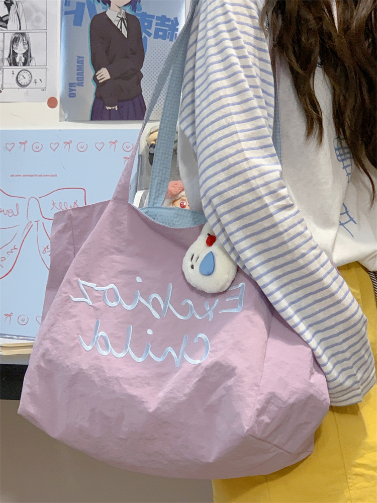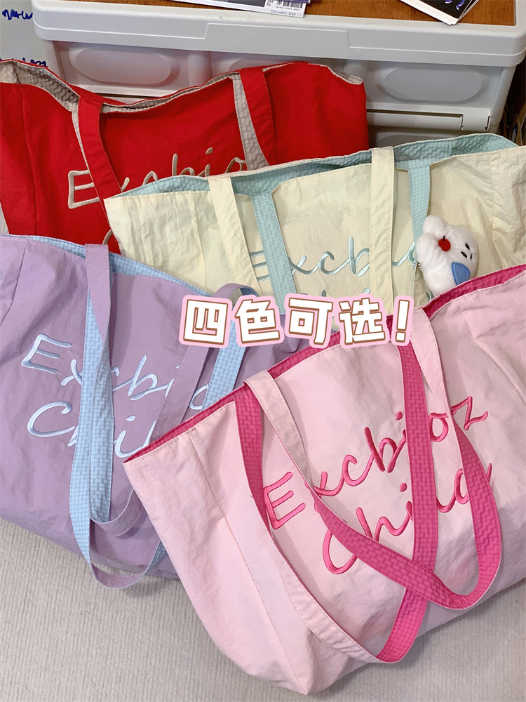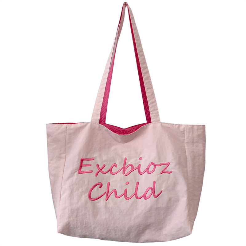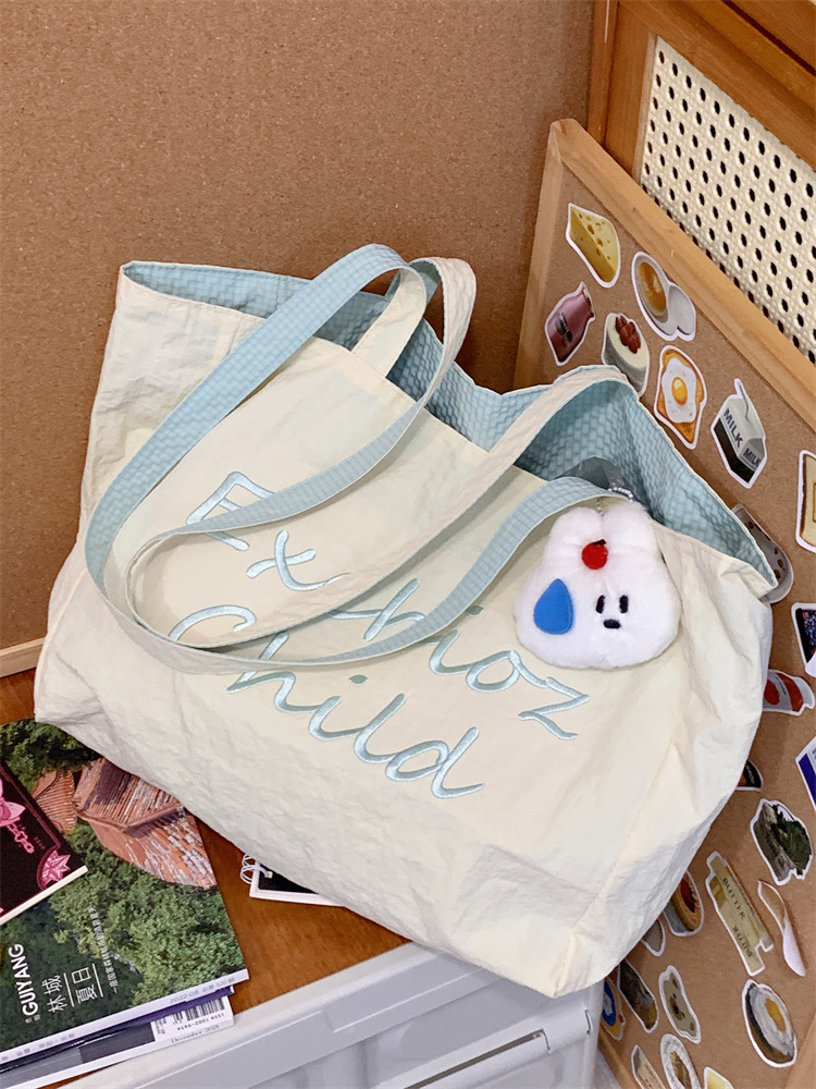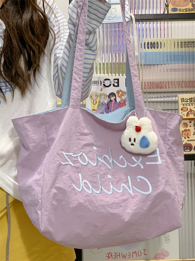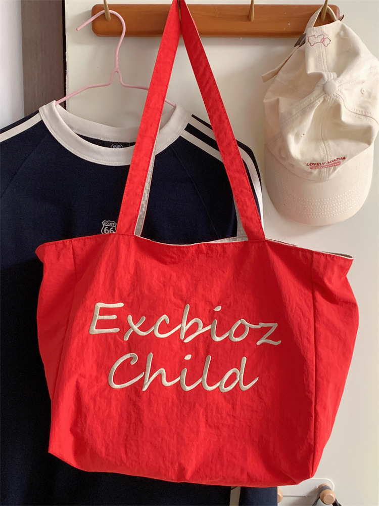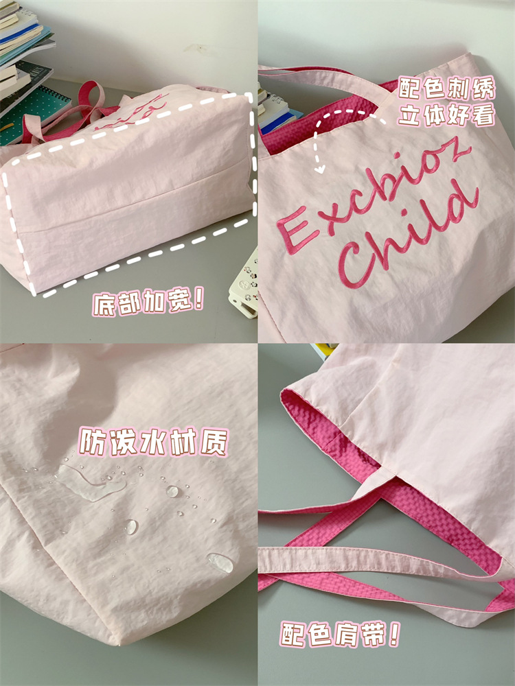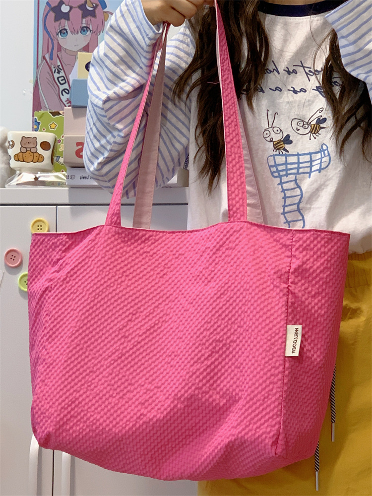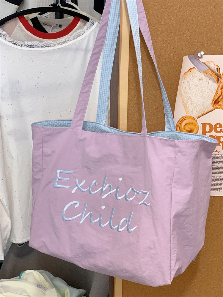 대용량 토트백, 양면 단색 숄더백, 질감 자수 대학생 캔버스백, 여성 통근가방