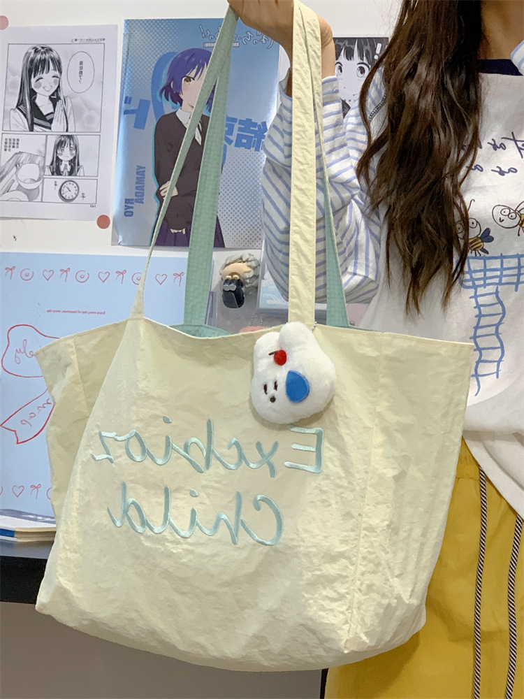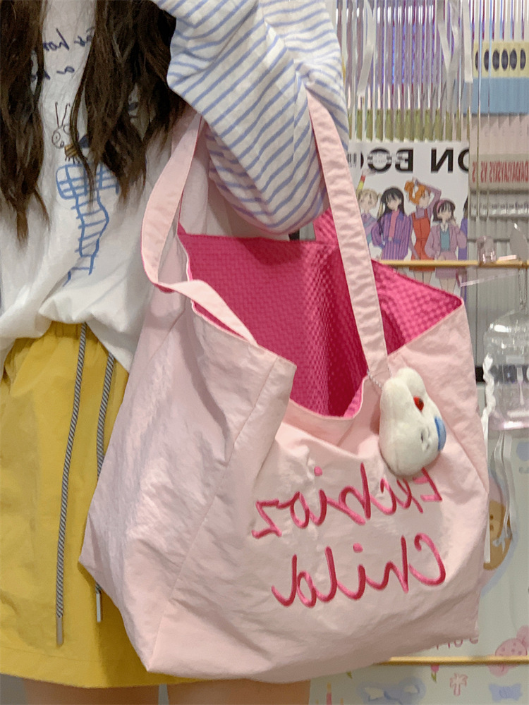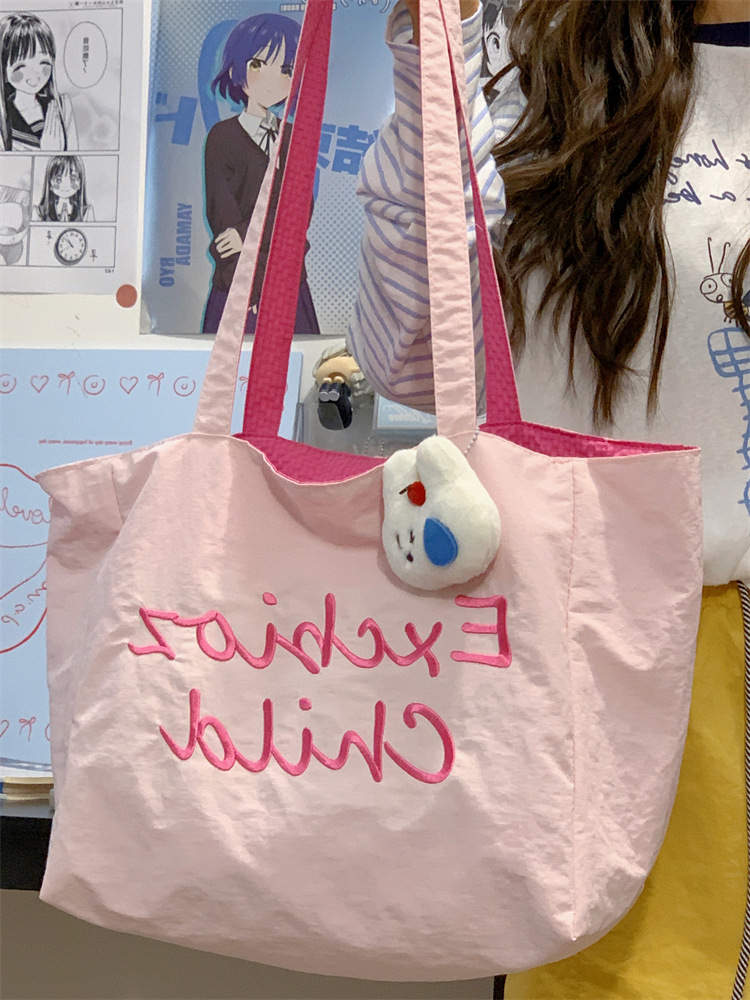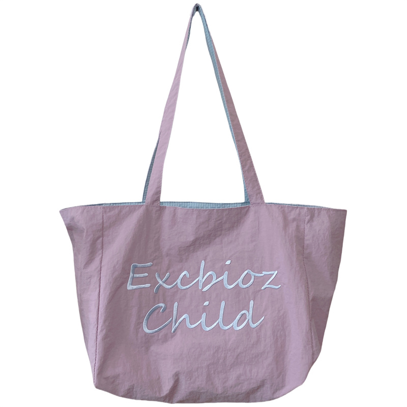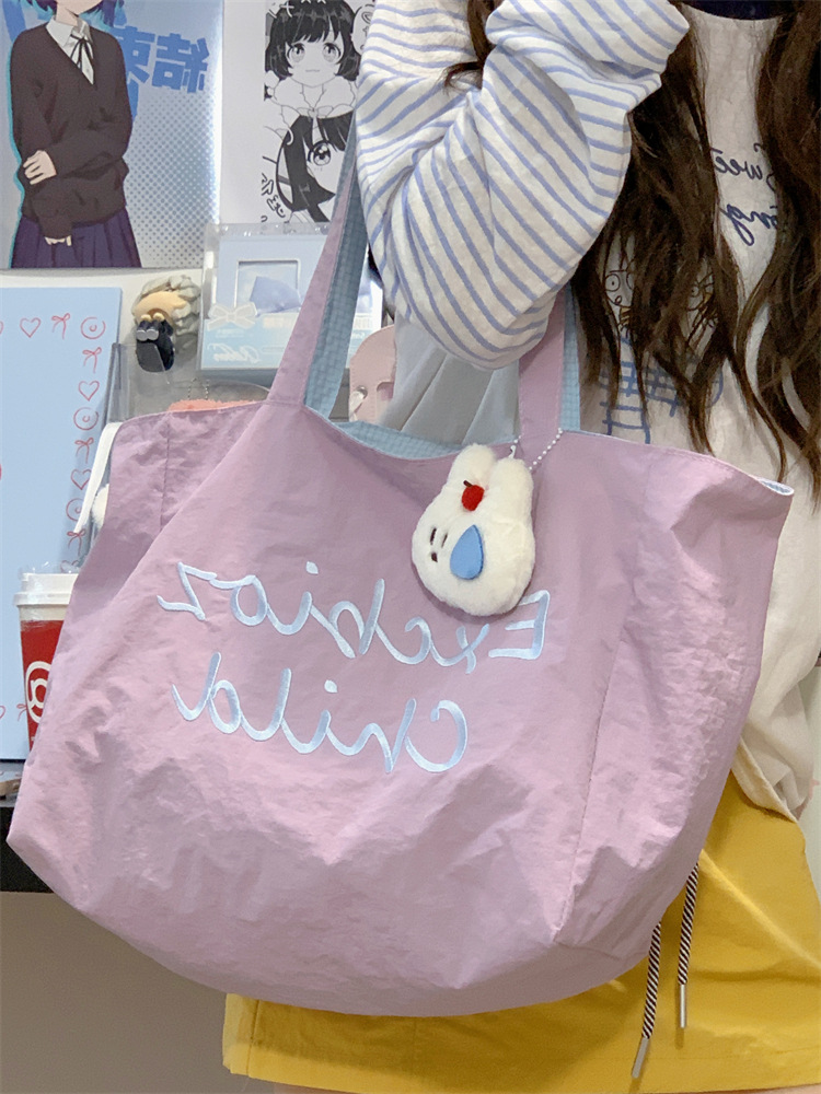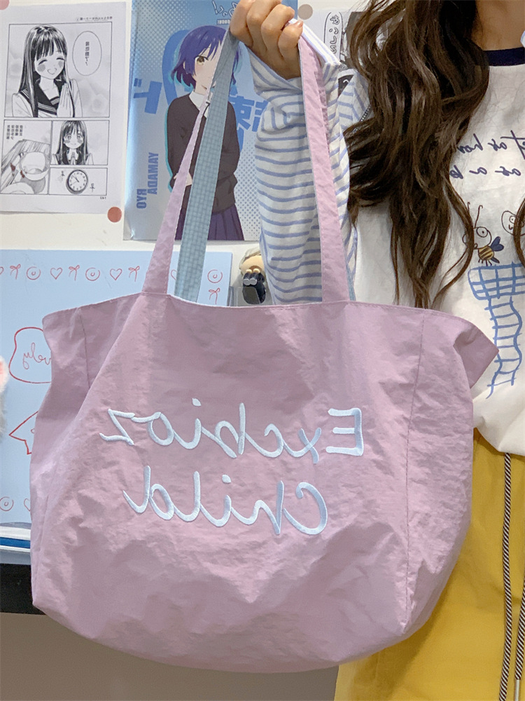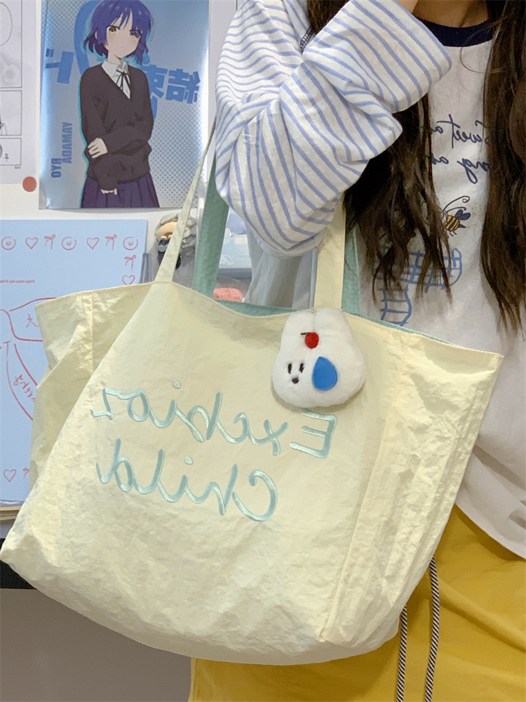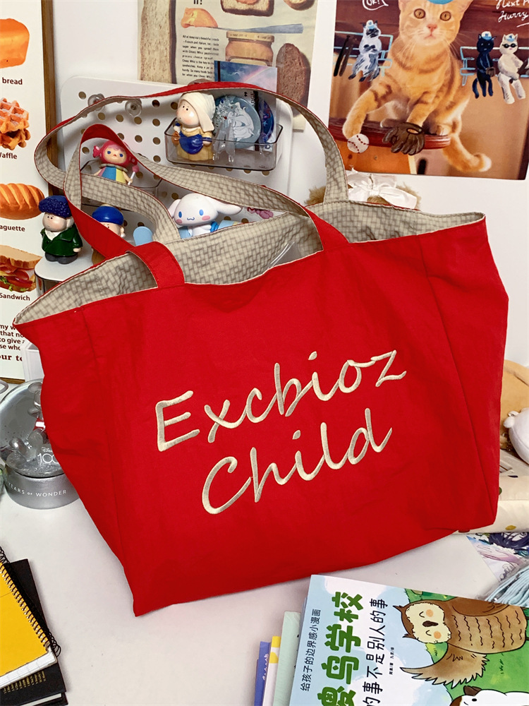 대용량 토트백, 양면 단색 숄더백, 질감 자수 대학생 캔버스백, 여성 통근가방