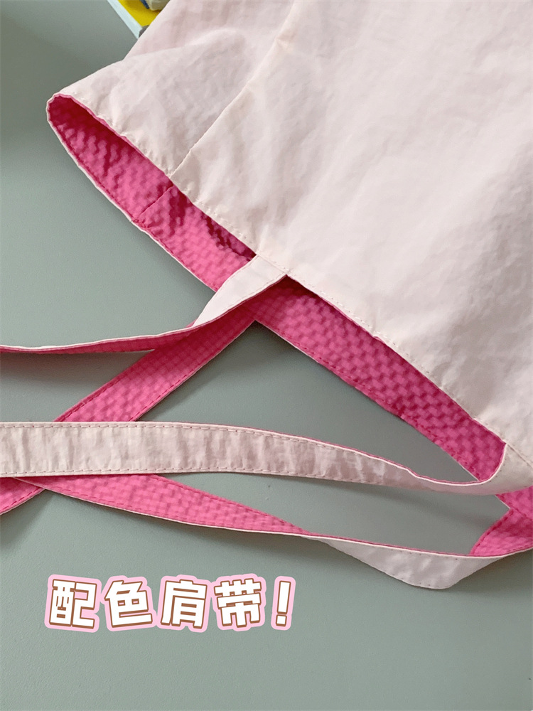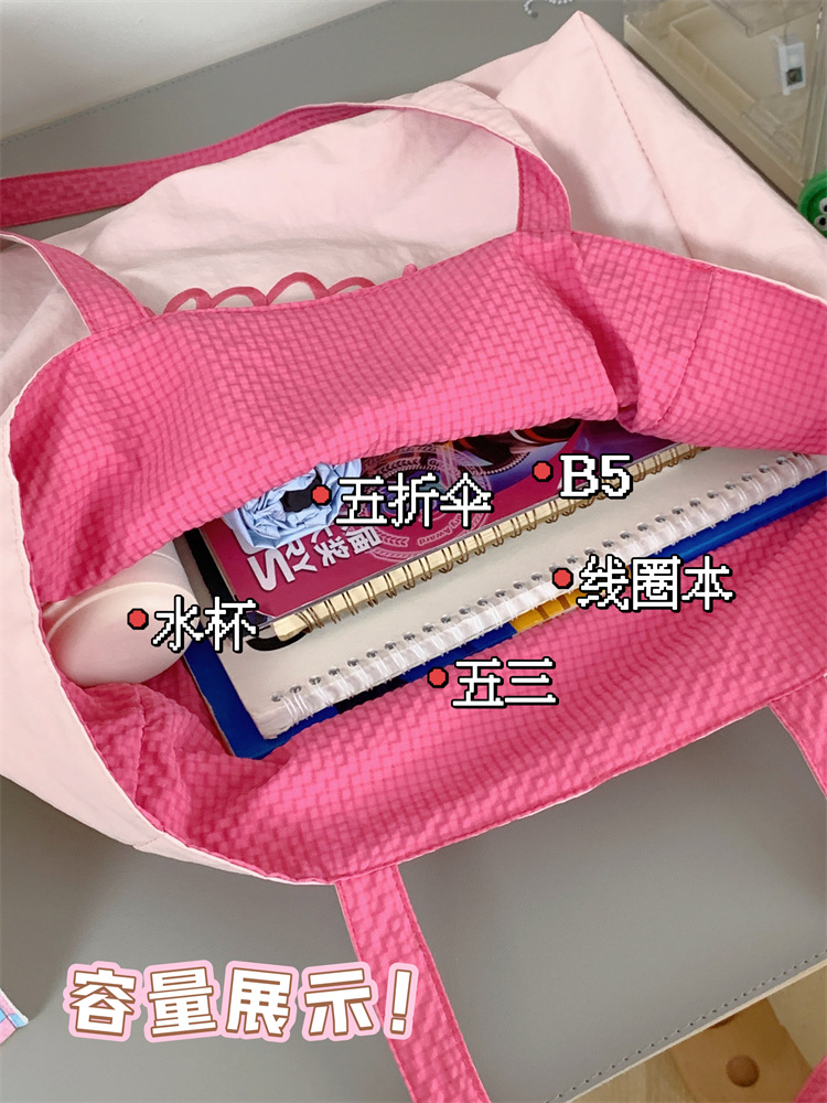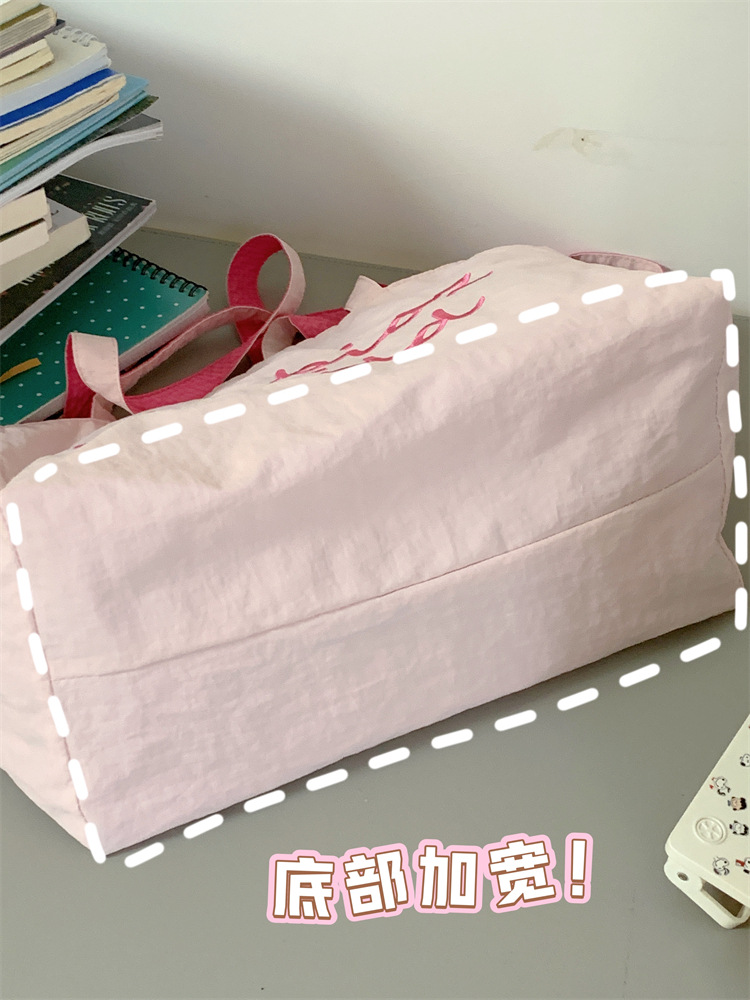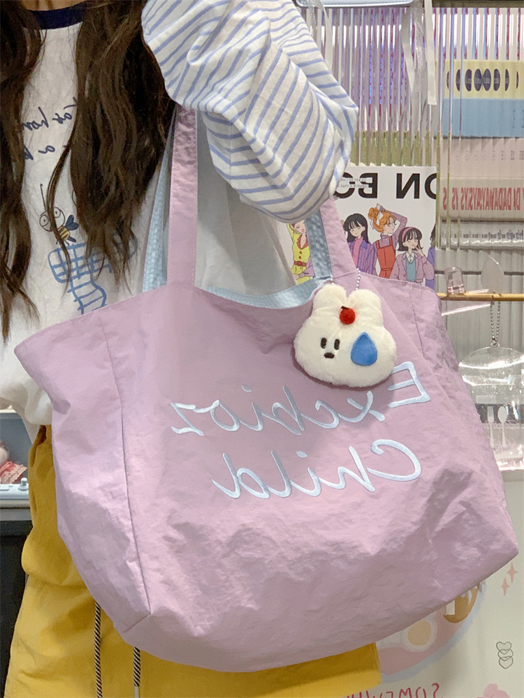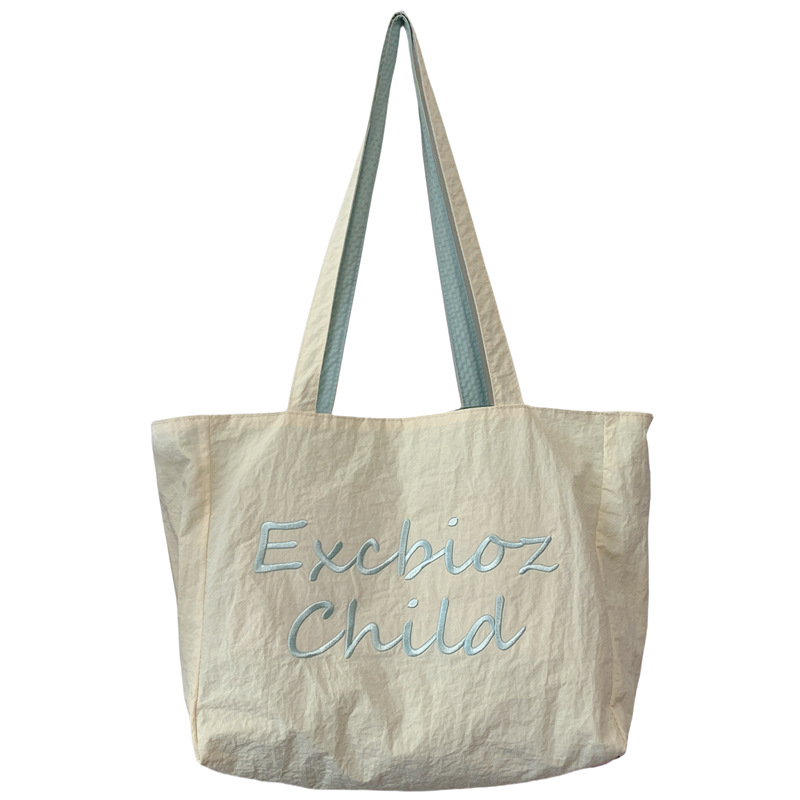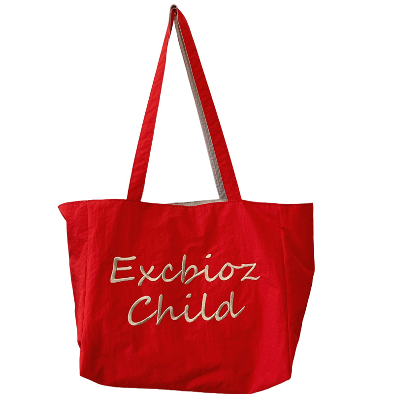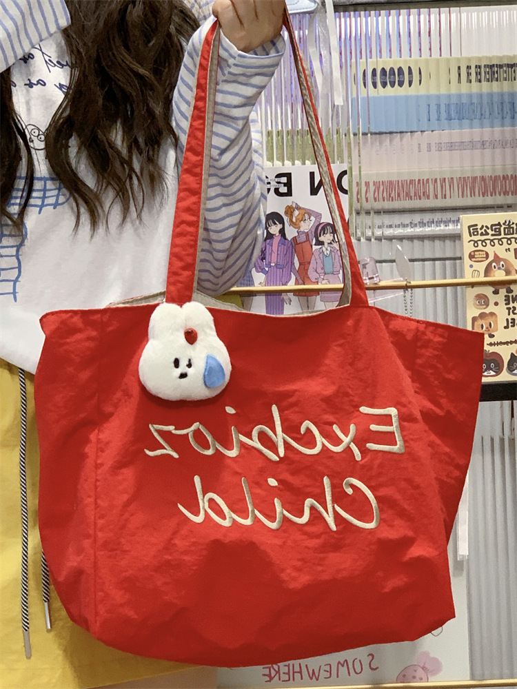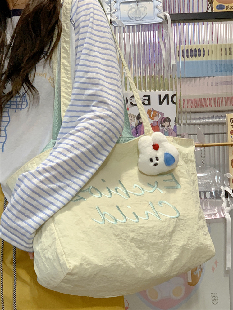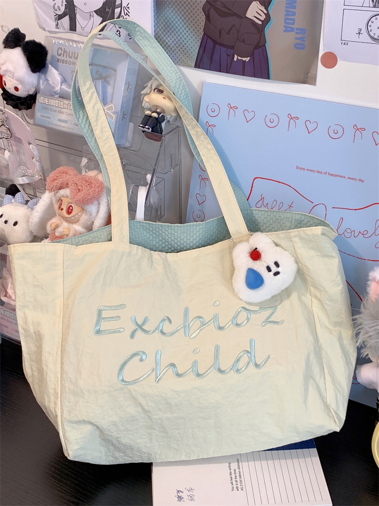 대용량 토트백, 양면 단색 숄더백, 질감 자수 대학생 캔버스백, 여성 통근가방