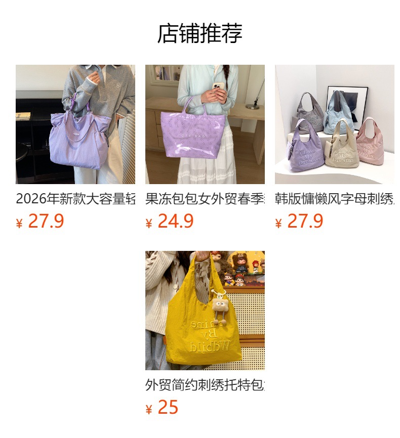 대용량 토트백, 양면 단색 숄더백, 질감 자수 대학생 캔버스백, 여성 통근가방스토어 가기