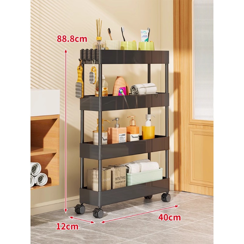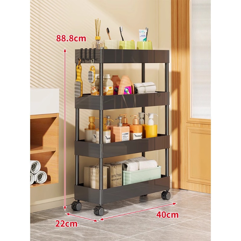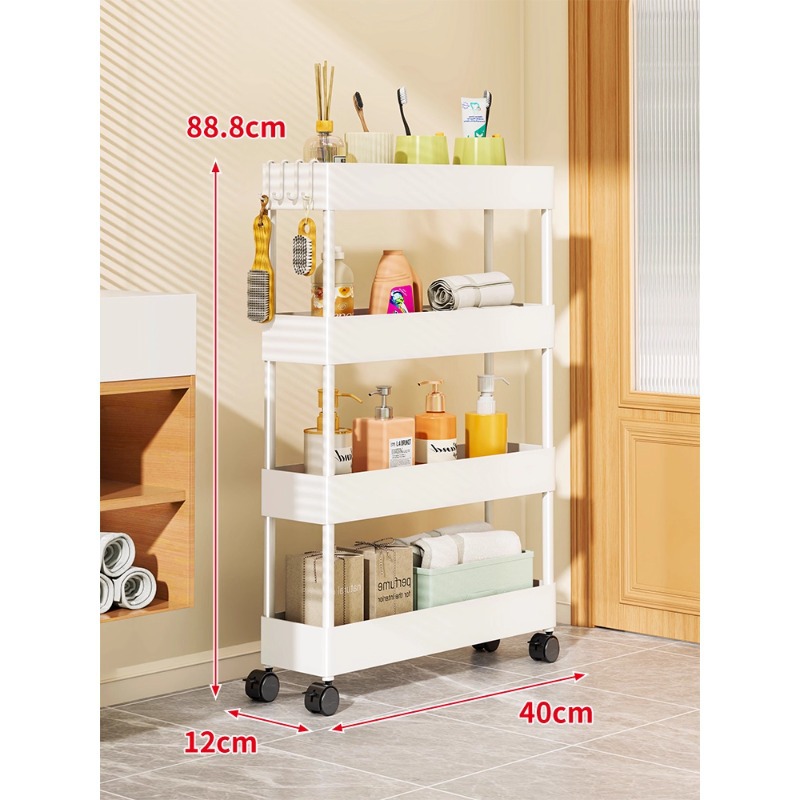 문 뒤에 있는 좁은 틈새 수납 선반, 주방 및 욕실 수납 캐비닛, 다층 수납 및 수납 이동식 트롤리스토어 가기