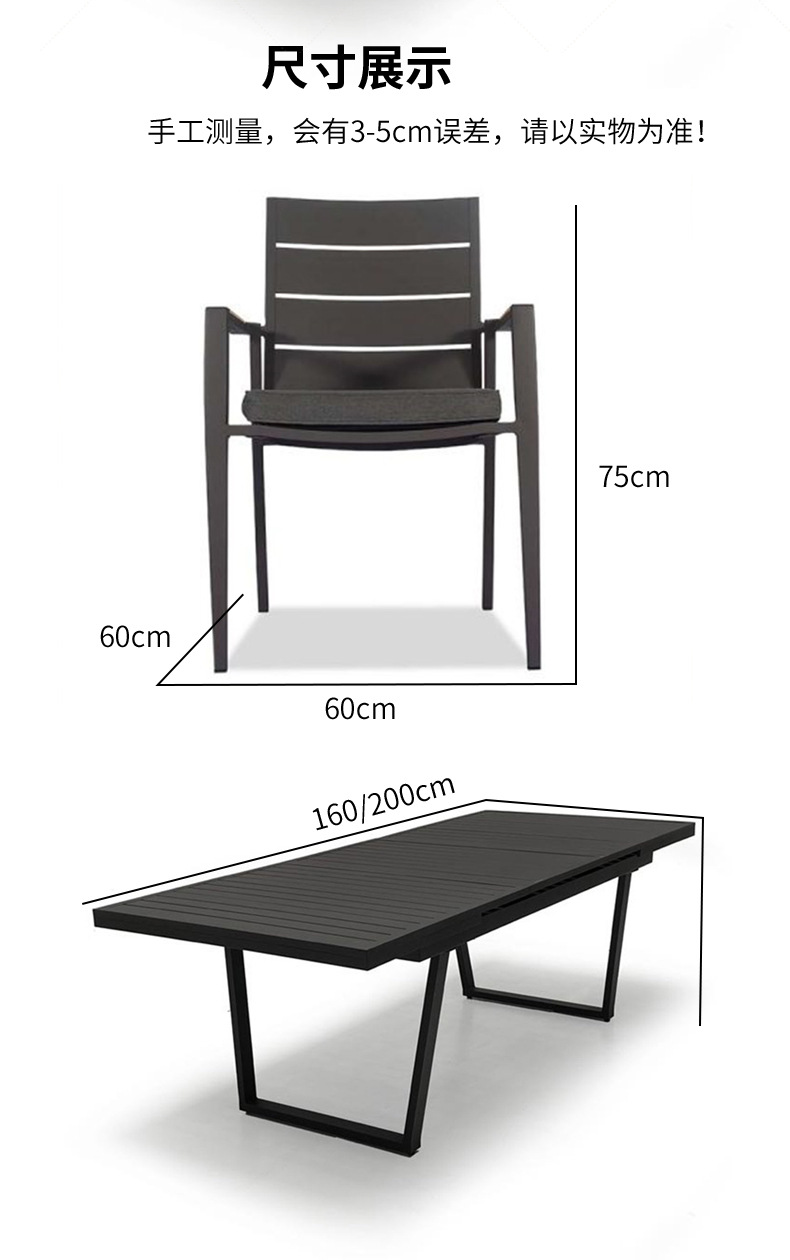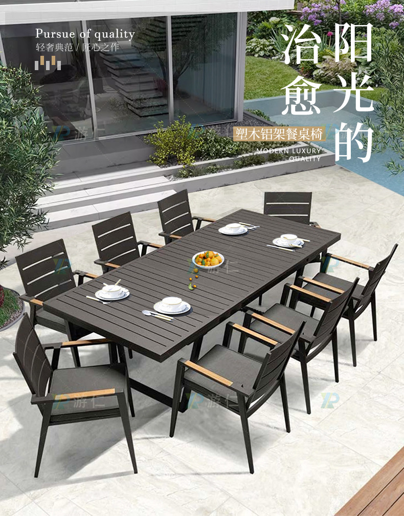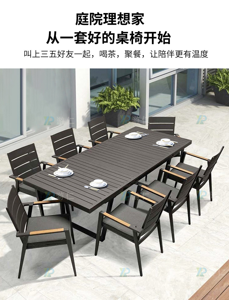 야외 알루미늄 합금 테이블과 의자, 안뜰 빌라 정원, 테라스, 발코니, 방수 및 자외선 차단제, 레저용 긴 식탁 조합스토어 가기