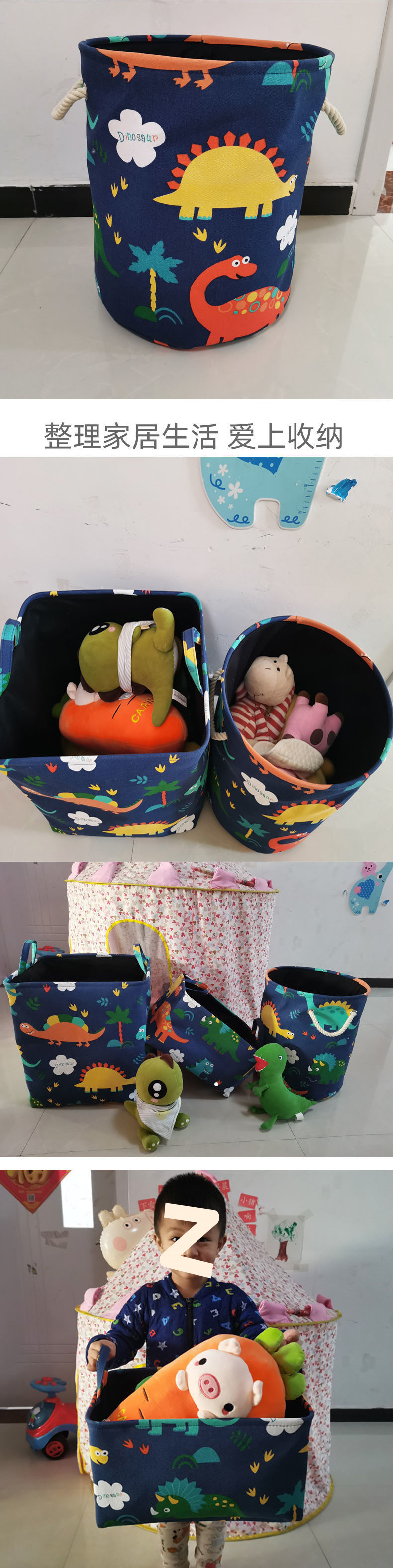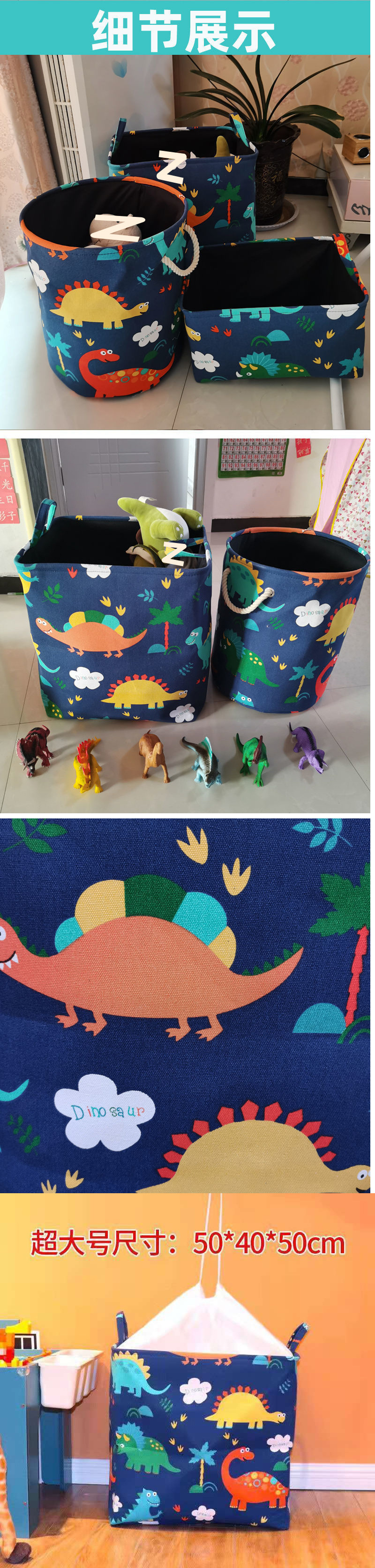 • 넓은 입구의 짙은 파란색 공룡 바구니 대형 + 소형 세트 [웨이징] 업그레이드 버전