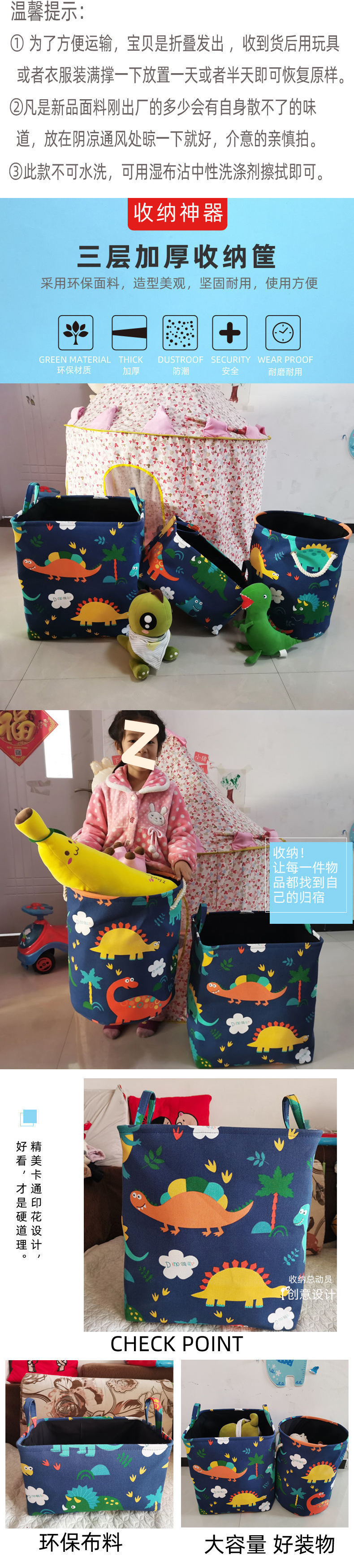 어린이 직물 장난감 보관 바구니 이불 옷 3 층 두꺼운 더러운 옷 보관 바구니 스낵 보관 바구니스토어 가기