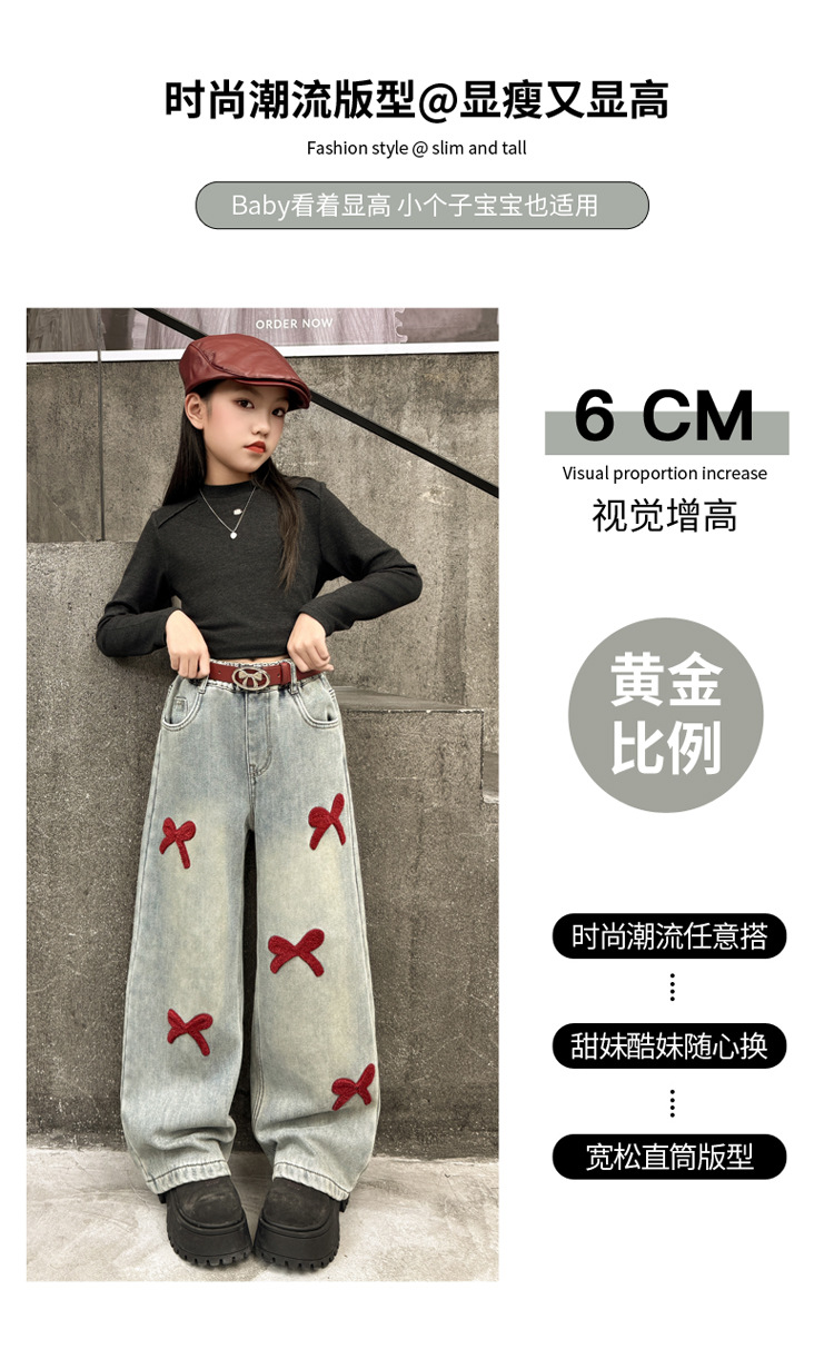 여아 바지 가을 의류 2025 새로운 스타일 아동 청바지 봄, 가을 여아 바지 중대형 아동용 와이드 팬츠스토어 가기