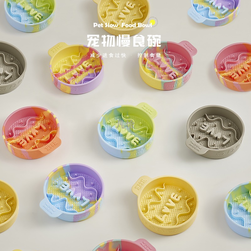 WOOW 슬로우 푸드 그릇 중소형견용, 질식 방지, 넘어짐 방지, 슬로우 푸드 애완견, 강아지 및 고양이용 실리콘 사료 그릇 및 물그릇