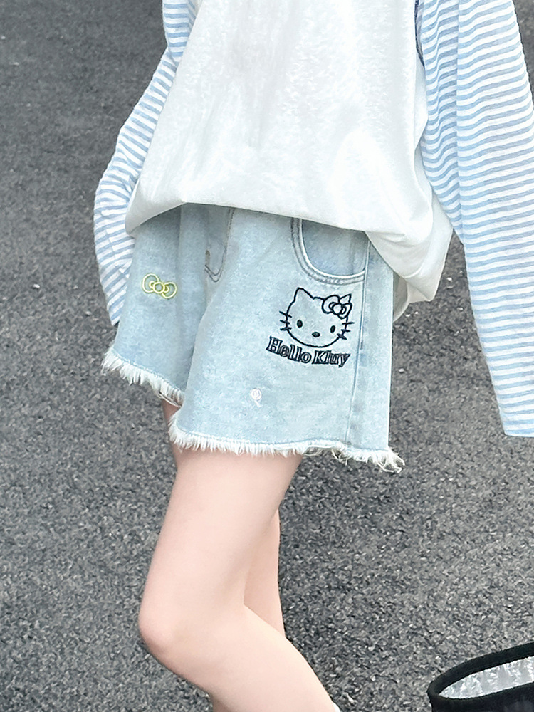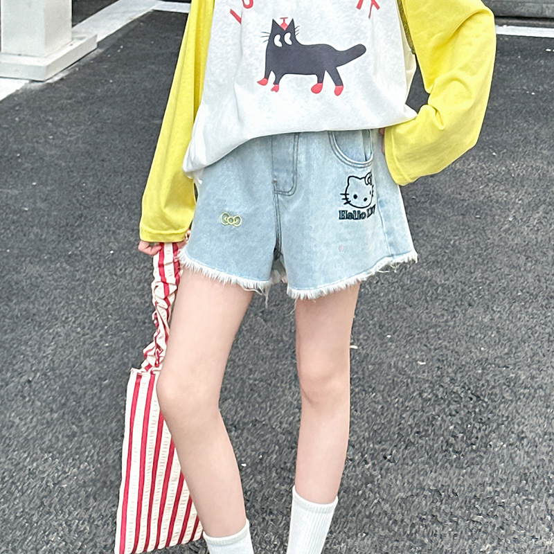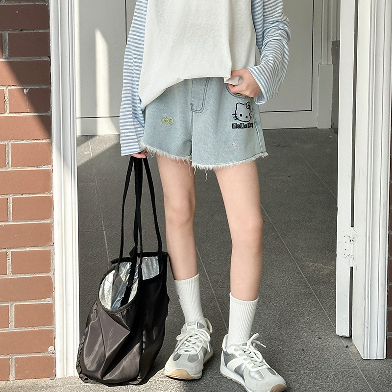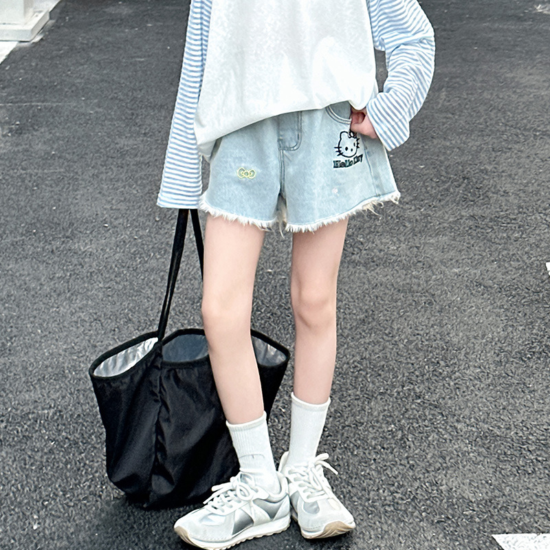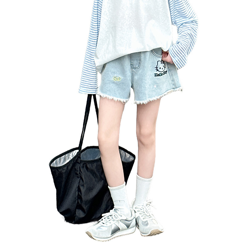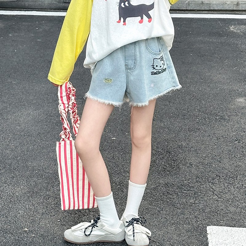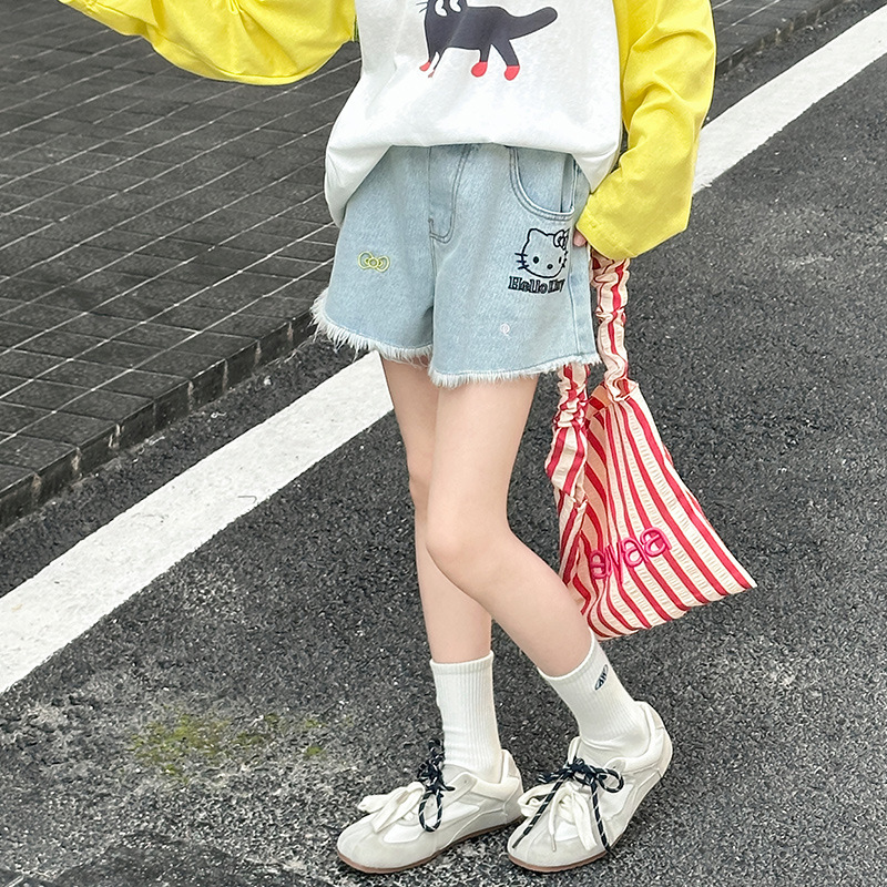 여자 데님 반바지 헬로 키티 고양이 2025 새로운 여름 어린이 핫 바지 여름 얇은 한국 스타일 바지스토어 가기
