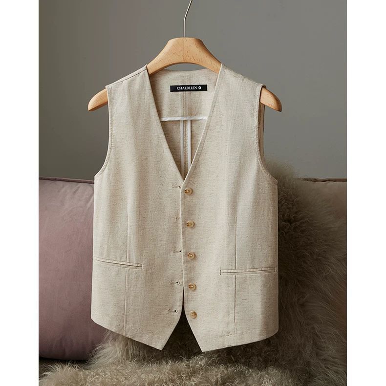 여성을 위한 슬림하고 우아한 린넨 아우터 조끼 2025 새로운 여름 얇은 스타일 다재다능한 여름 트렌드 패션스토어 가기