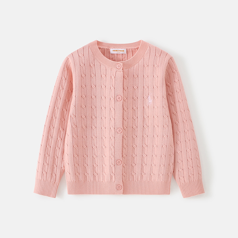 2025 가을 겨울 한국 스타일 여아 가디건 스웨터 코트 라운드넥 아동복 아기 스웨터