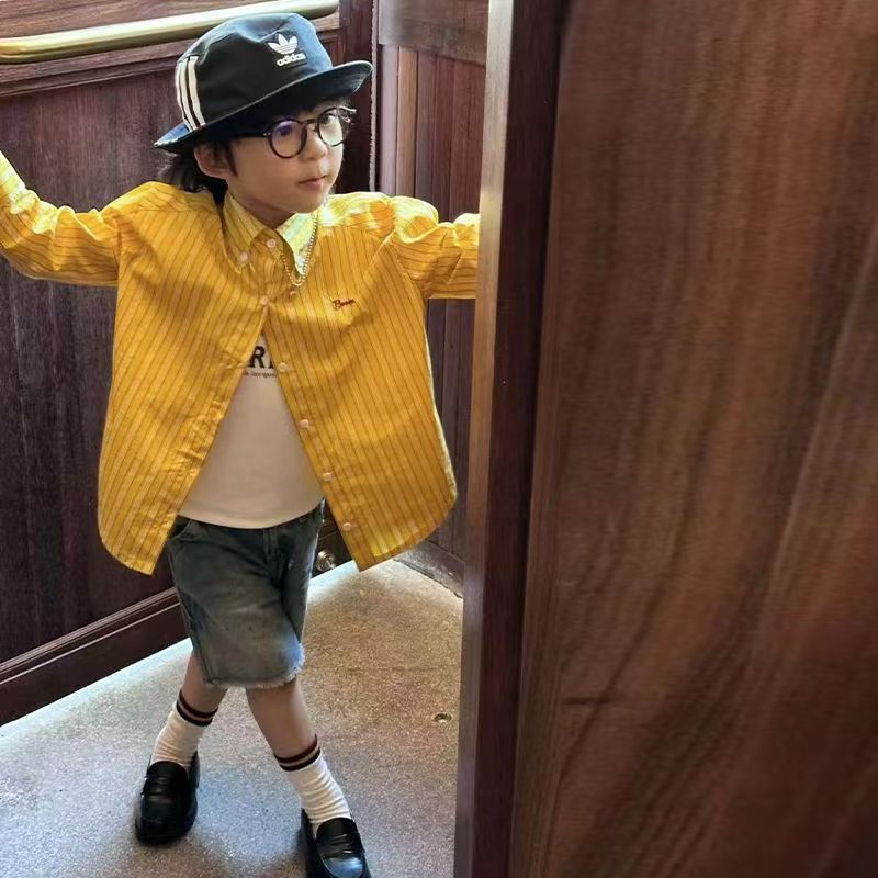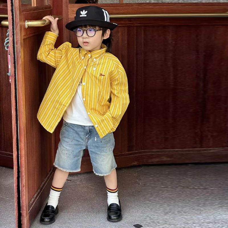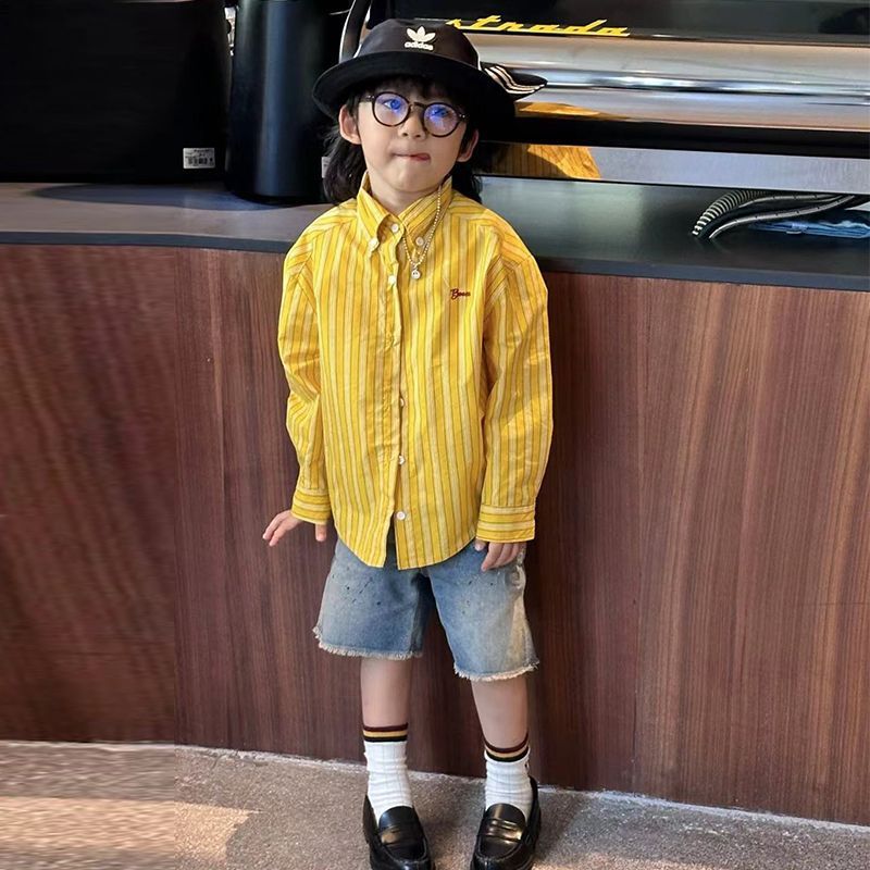 소년과 소녀 2025 봄, 여름 캐주얼 라펠 스트라이프 셔츠 탑 어린이 유행 다목적 긴팔 셔츠 재킷스토어 가기