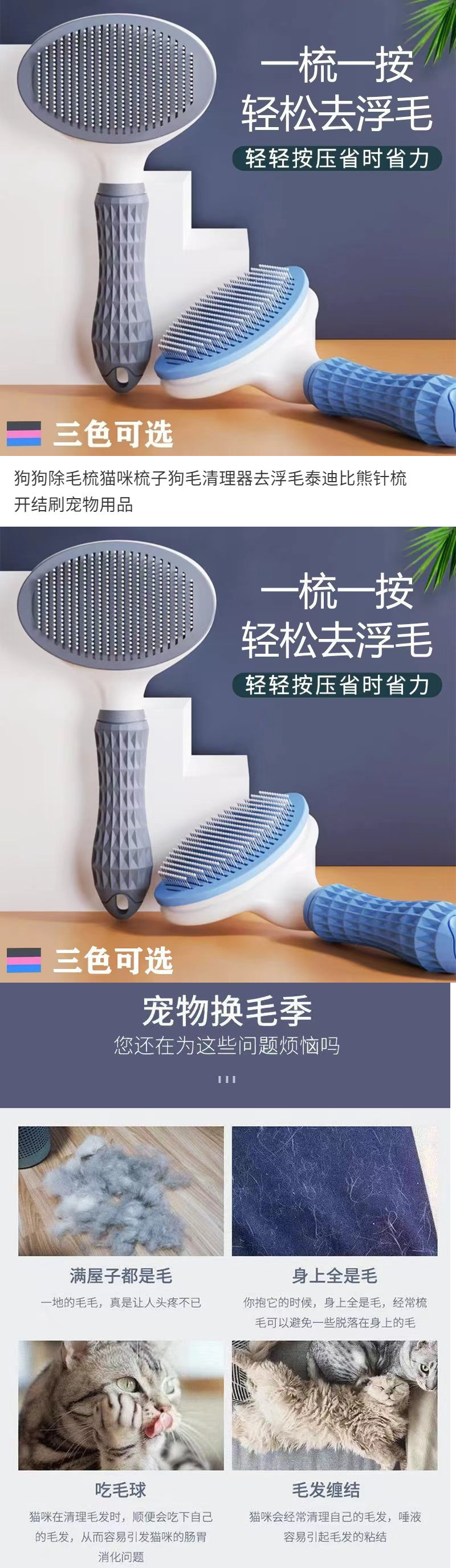 강아지 털 제거 빗, 고양이 빗, 강아지 털 청소기, 테디 비숑 바늘 빗, 푹신한 목욕 고양이 세트스토어 가기