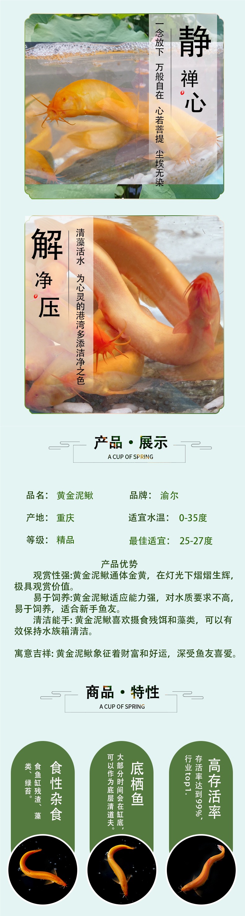 • 3- 5cm 마리, 8마리, 7.9위안 + 생선사료 1팩