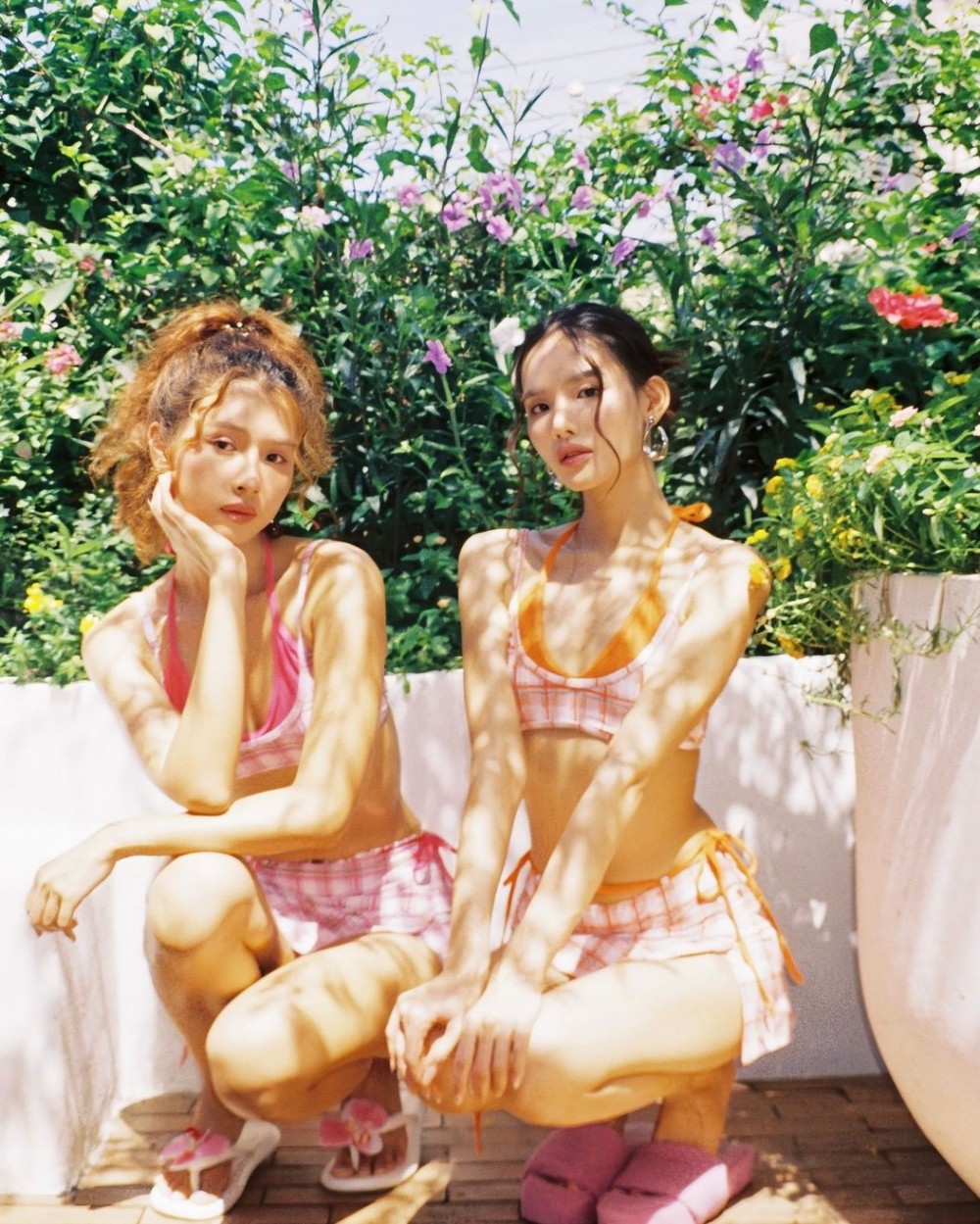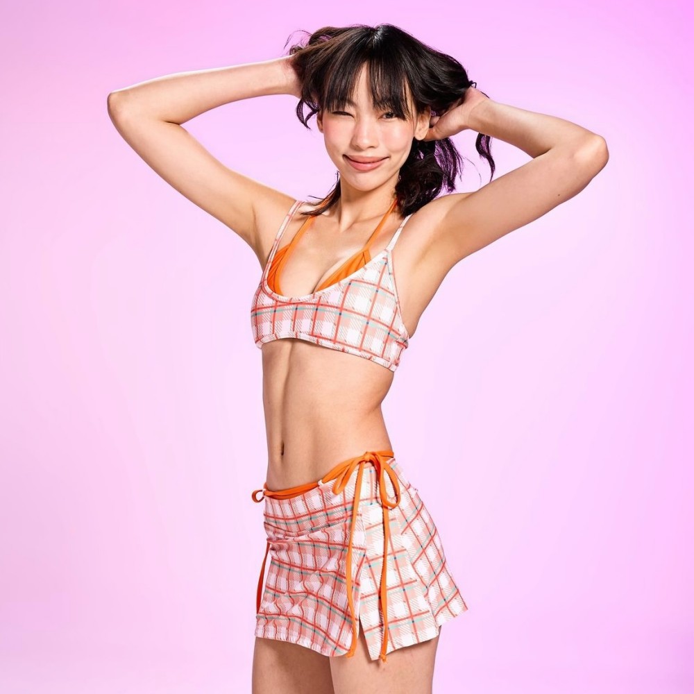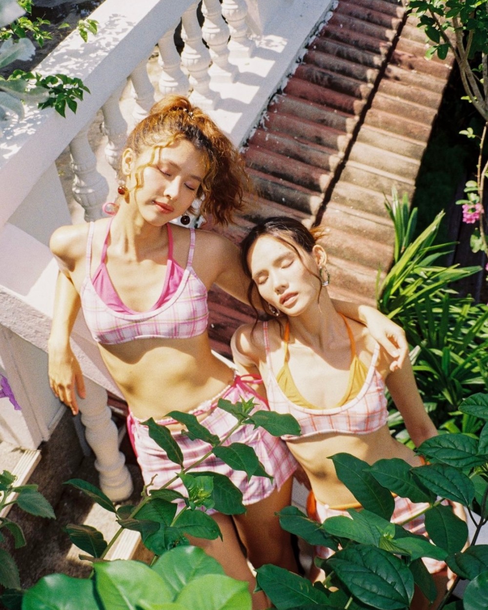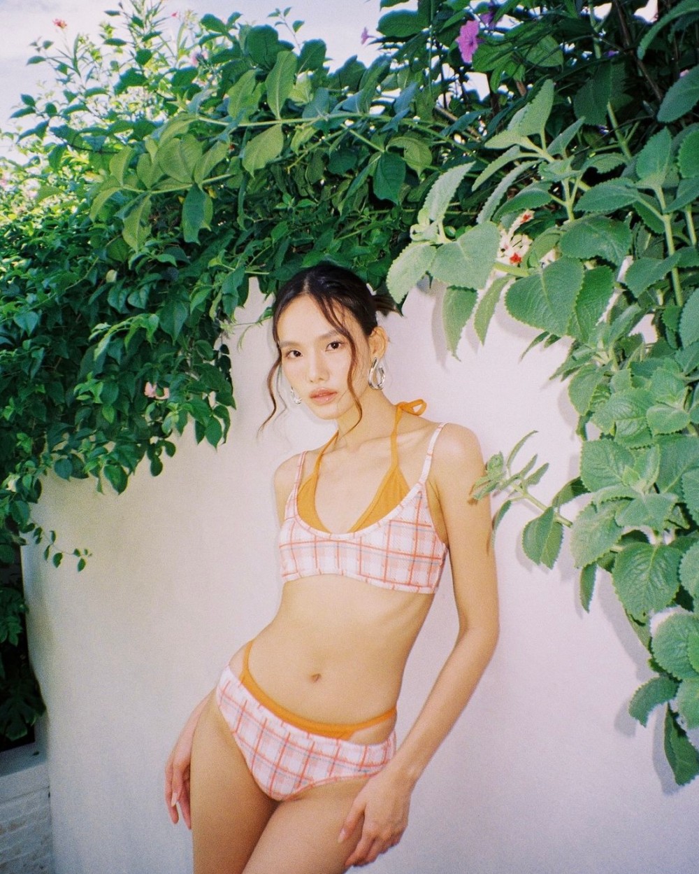 핫걸 대비 체크 무늬 스플라이싱 섹시 비키니 3피스 바비 핑크 섬 온천 휴가 수영복 비키니