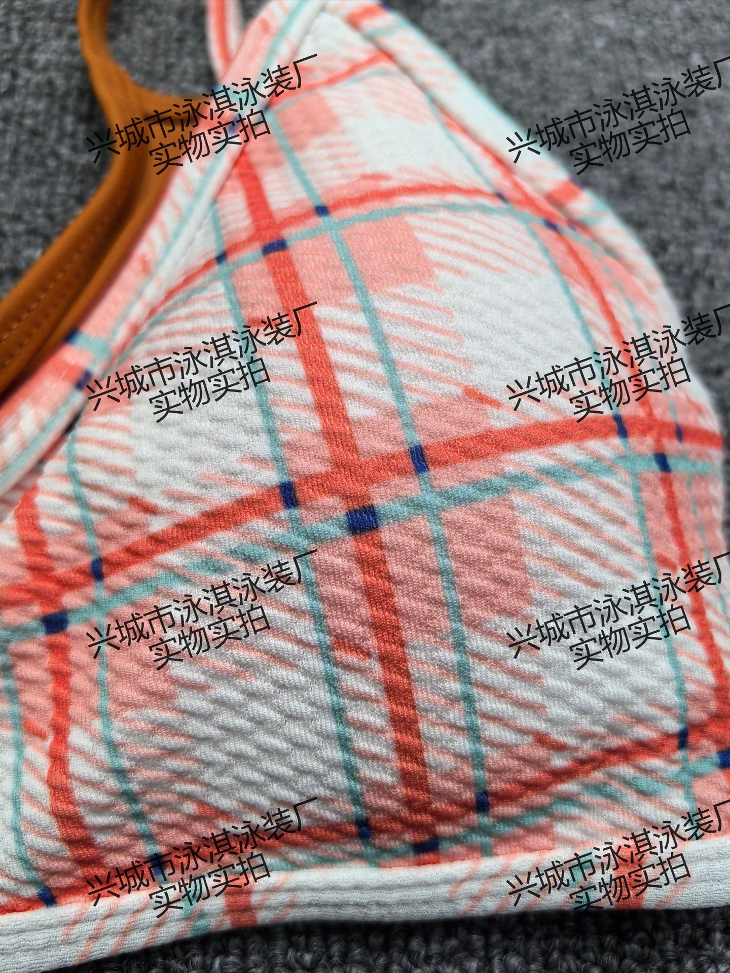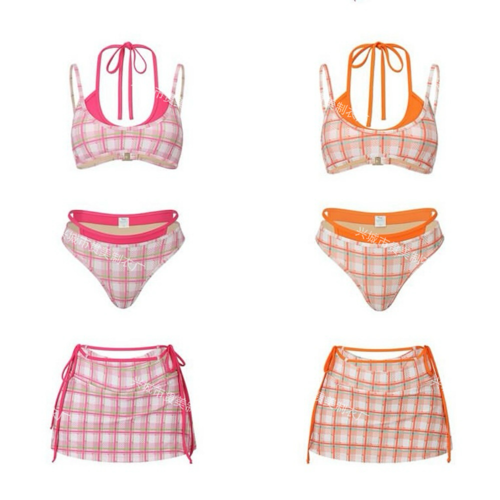 핫걸 대비 체크 무늬 스플라이싱 섹시 비키니 3피스 바비 핑크 섬 온천 휴가 수영복 비키니스토어 가기