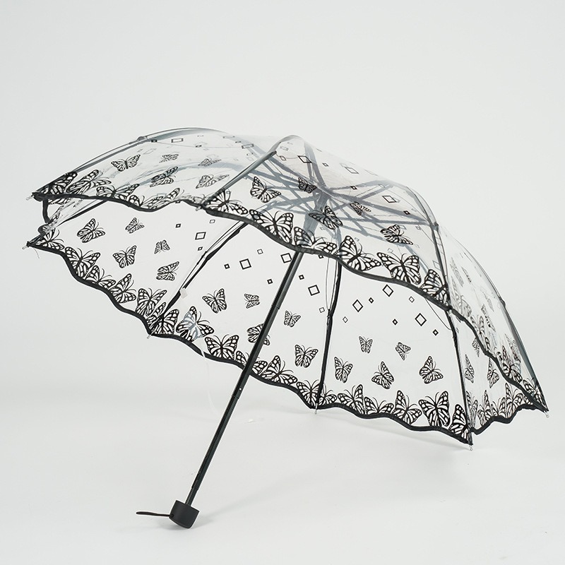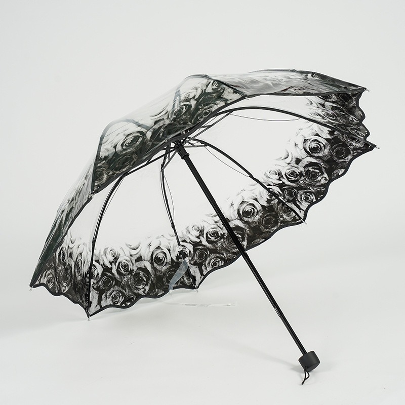 • 손으로 열 수 있는 검은색 테두리 투명 우산
