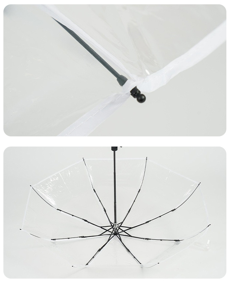 • 손으로 열 수 있는 흰색 테두리 투명 우산