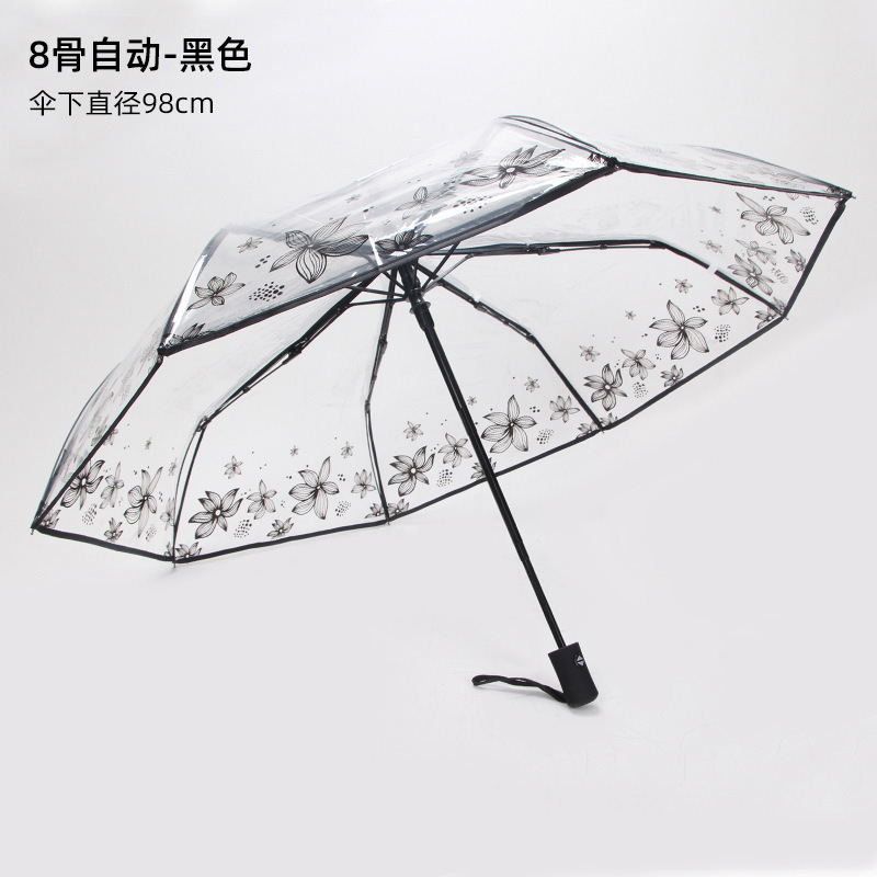 공장 직접 공급 투명 자동 우산 8본 완전 자동 작은 신선한 70% off 우산 광고 우산 선물 우산 로고 인쇄스토어 가기